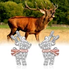 Christmas Reindeer Earrings Sterling Silver Stud Cartilage Huggie Diamond Zirconia Piercing Weird Funny Dainty Tiny Fashion Holiday|Earrings for Christmas Reindeer Sterling Silver Cartilage Huggie wit