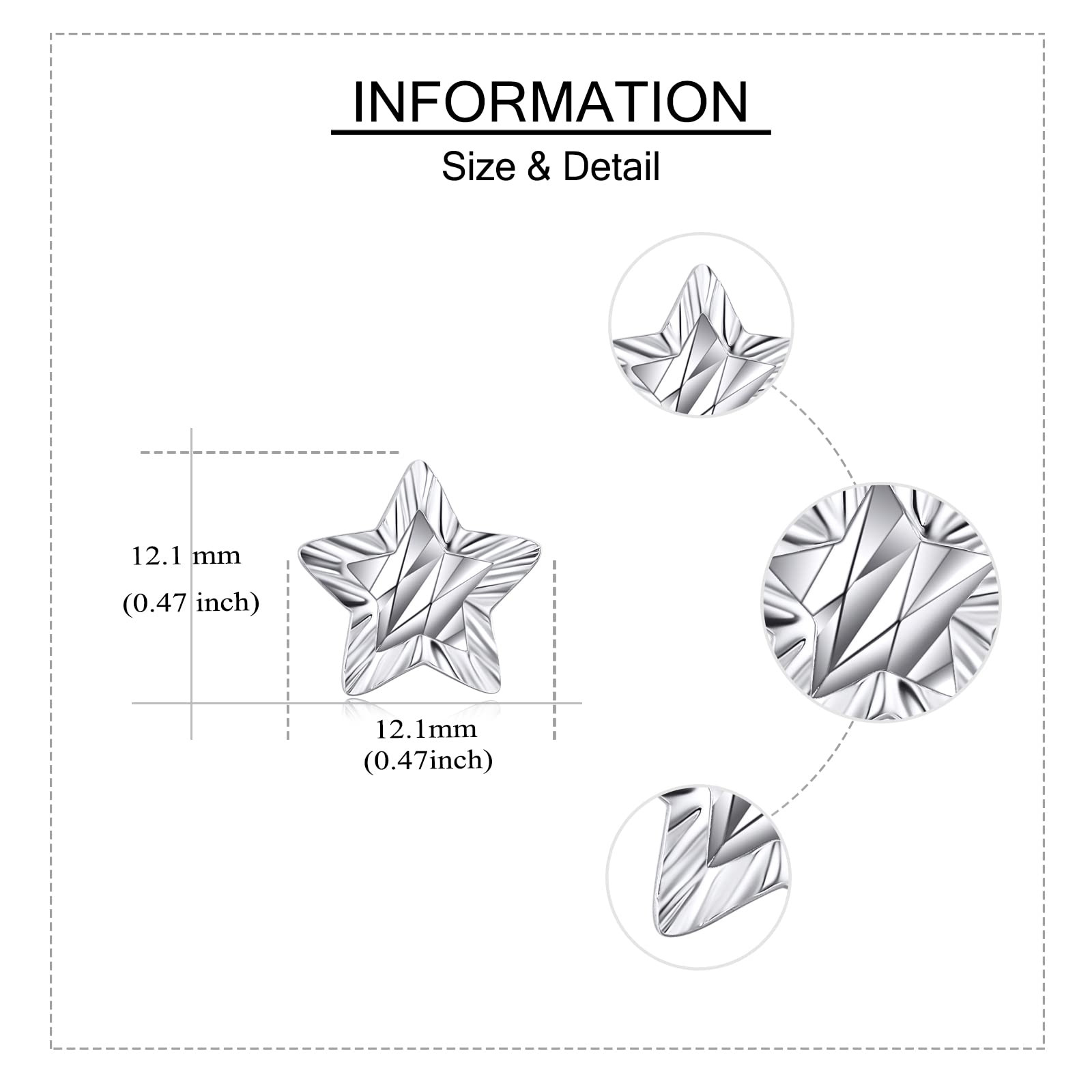 Star Stud Earrings Sterling Silver Diamond-cut Star Earrings Gifts for Women Wife Mom