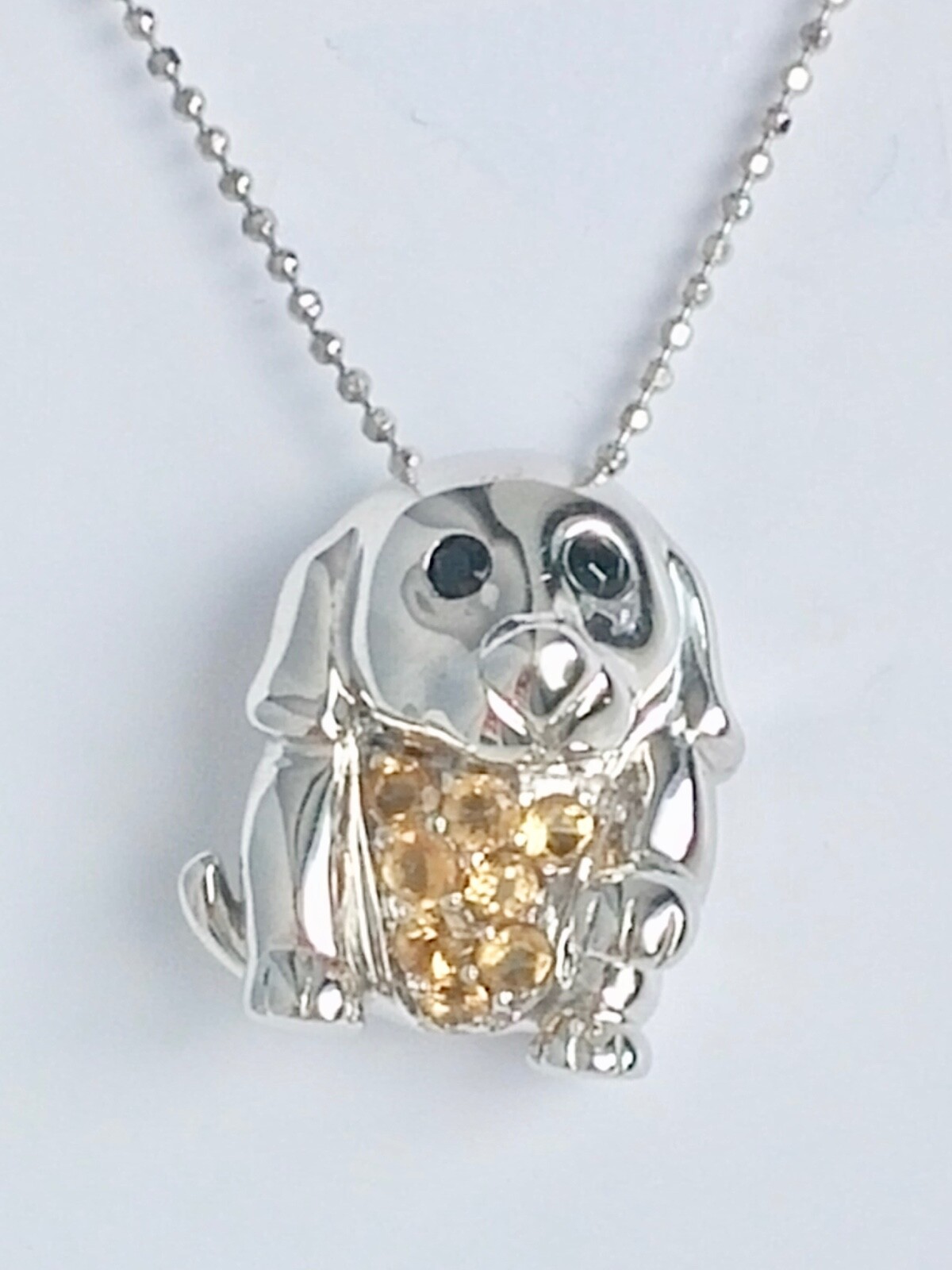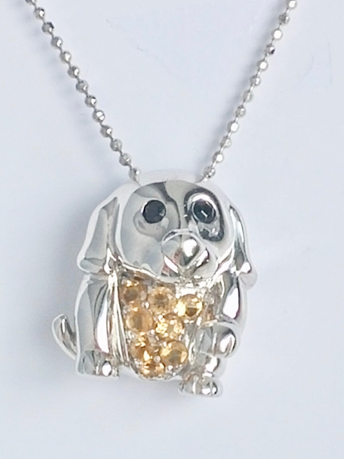 This amazing necklace features 0.50ctw citrine and onyx. This necklace includes 18” chain with spring ring closure. It is a great gift for a dog lover!!! The necklace is made in solid 925 Sterling Silver. Measures of the puppy is approximately 16 mm