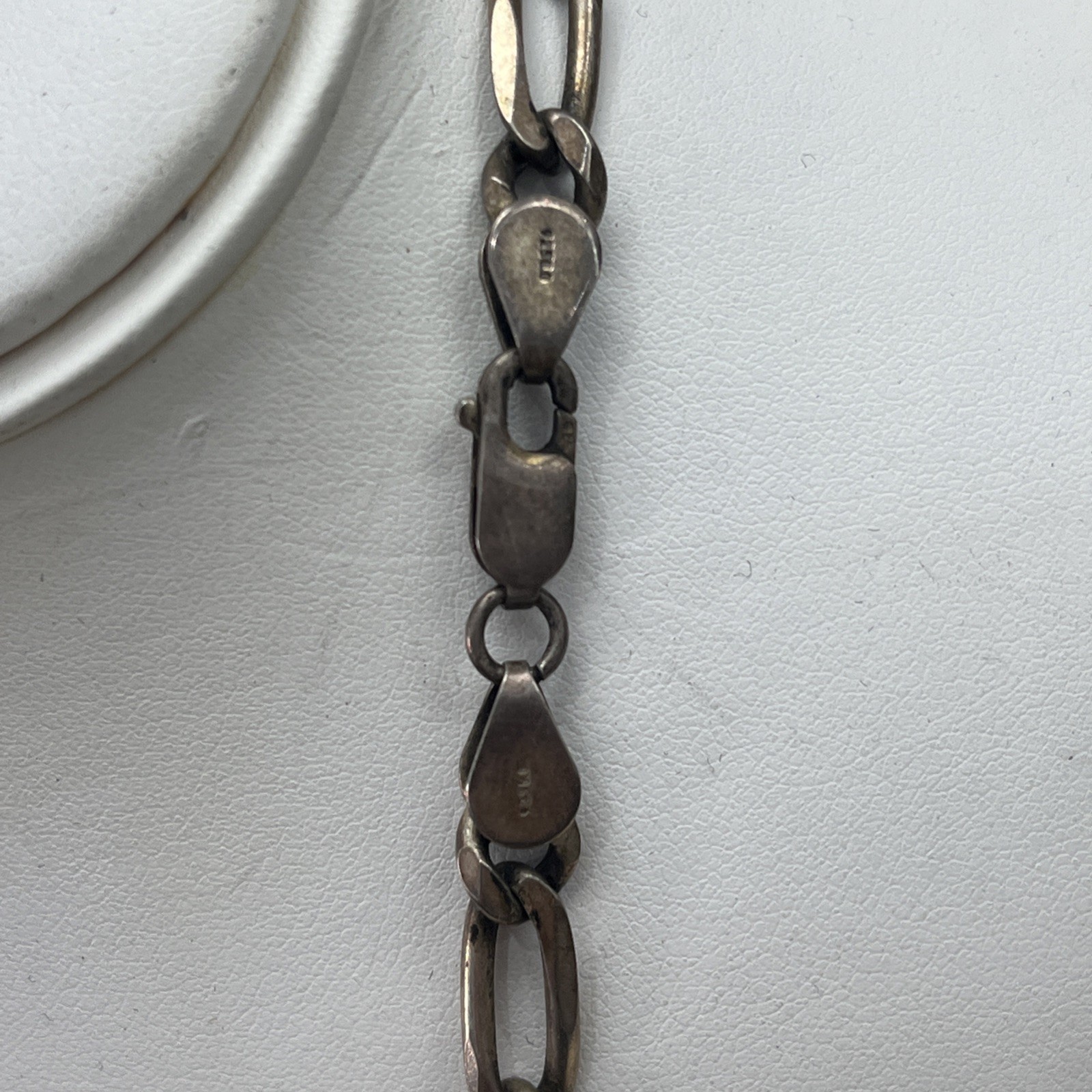 Sterling Silver Figaro Necklace. Measuring 22” inch. Weighs 38.4 grams. Width 6.5mm In great condition Needs silver cleaning