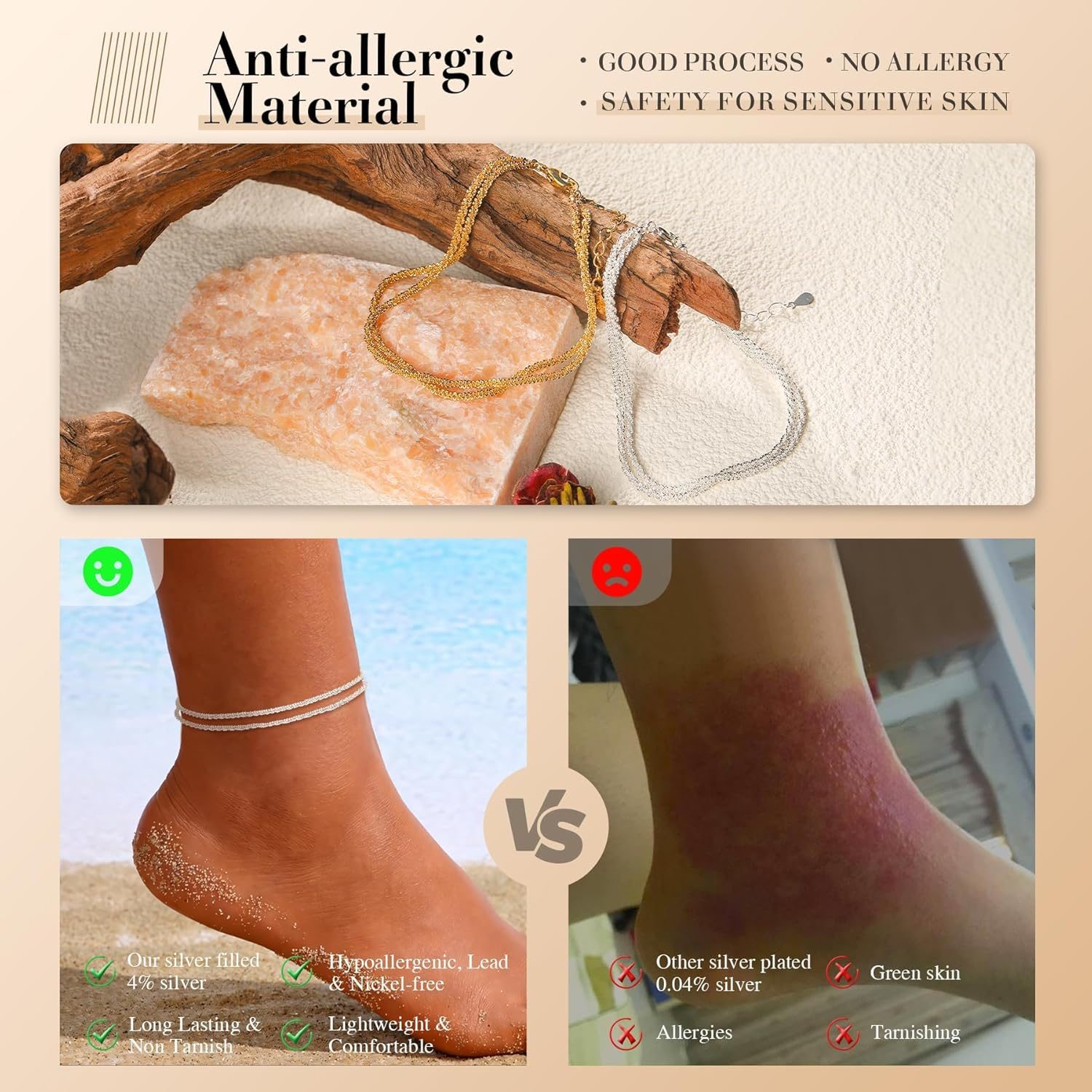 Love these anklets! The adjustable design fits perfectly, and the layered look is so stylish. They’re lightweight yet durable, and I love mixing and matching them for different outfits. Great quality for the price—highly recommend!