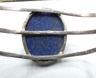 This stunning cuff bracelet is made of high-quality sterling silver and features a beautiful oval-shaped lapis lazuli gemstone. The round shape of the bracelet adds to its unique and elegant design. Handmade with care, this bracelet is a true work of art. The bracelet is 7 inches in length and features a bezel setting style. The natural creation of the gemstone adds to its ethic and regional appeal. Perfect for both men and women, this bracelet is a versatile addition to any jewelry collection. The stone measures approx. 37mm x 30mm Thanks for shopping and Good Luck!