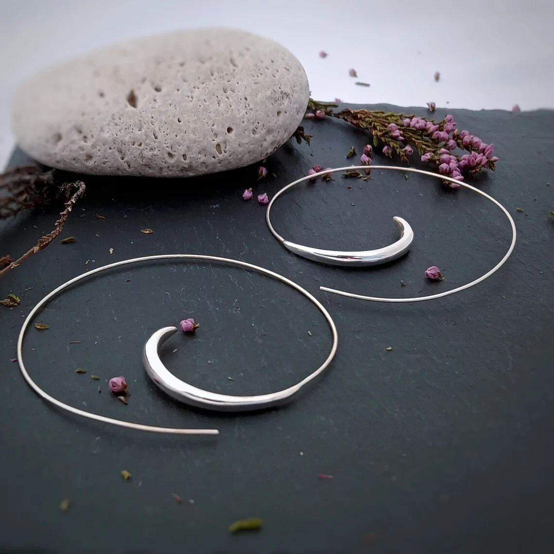 Large liquid drop round spiral earrings in sterling silver. Nickel FREE Large dangling spiral threaders in high polished silver with a weighted liquid drop at the end which lends itself the the elegant ondulating motion when worn. 1mm thick round silver wire threaders with a simple yet sleek design. Very popular for Tribal style Boho jewellery lovers. Flexible wire can be worn with ease and look stunning on. Buy Now! Dimensions: Spiral Diameter: 5.5 cm Weight: 6.7 grams per pair SOLD ONLY IN PAIRS! Delivery Information All items dispatched from the UK. Item will be carefully packaged in eco-packaging to safeguard it during delivery and with our branded satin pouch ready as a gift. Standard Tracked 48 Shipping with Royal Mail or Yodel included FREE . Tracking number details will be sent after dispatch (which is usually within 1 working day of purchase. Weekends/festivities excluded). Faster shipping options also available for the UK. Worldwide shipping available with Royal Mail Tracked & Signed. Returns accepted within 14 days of receipt. At customers’ expense.