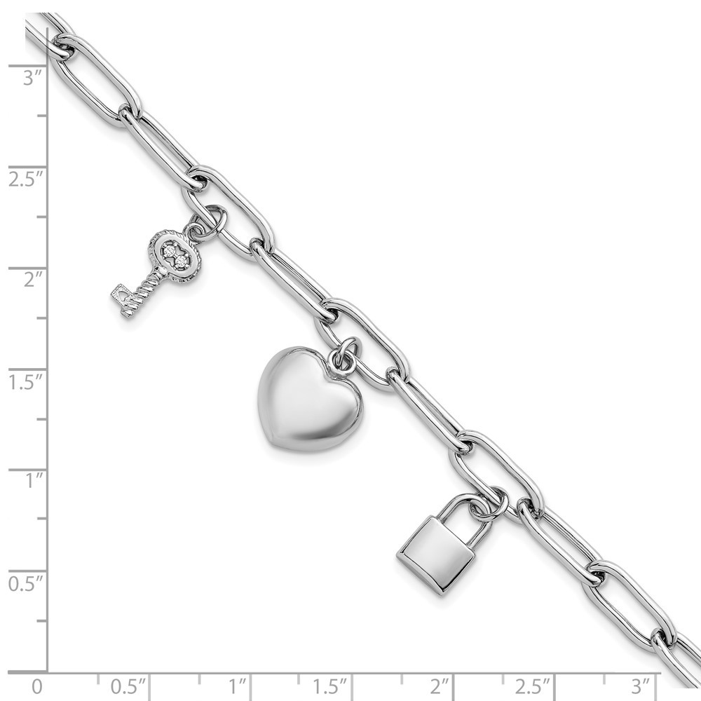 925 Sterling Silver Rhodium-plated with Cubic Zirconia Link Bracelet 7" 7.33gm