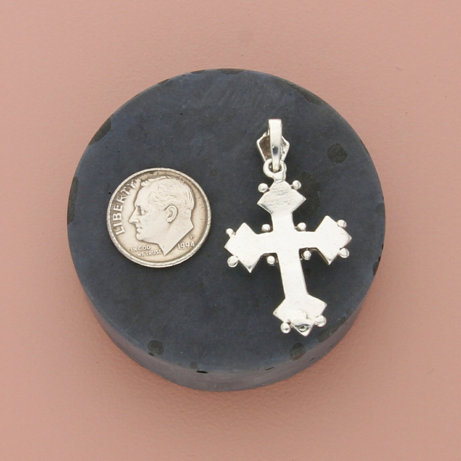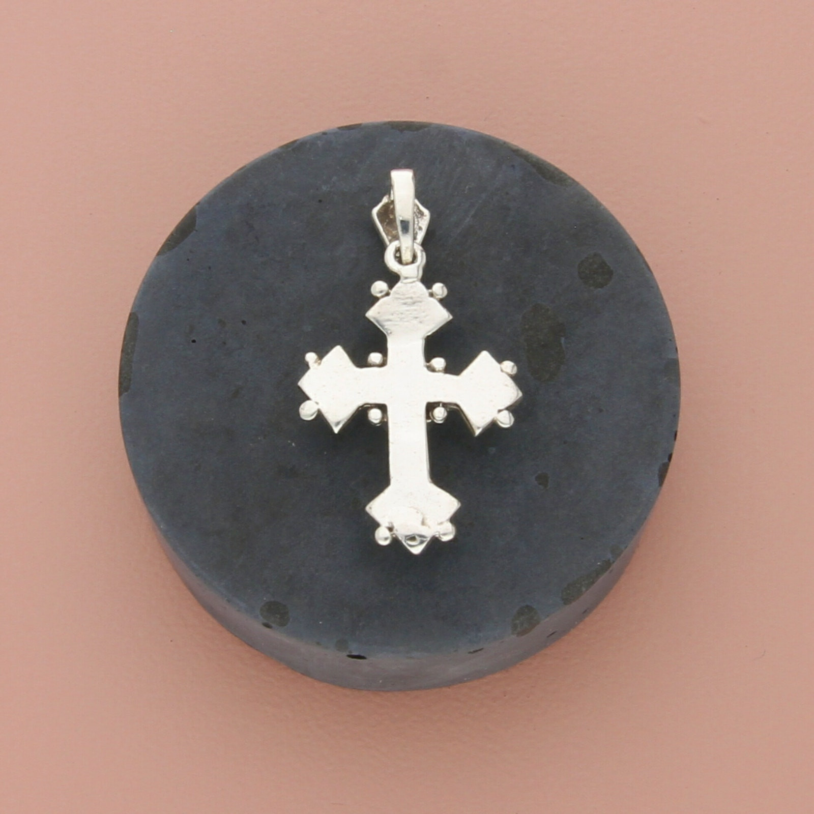 sterling silver marcasite studded onyx cross pendant Pre-loved but in great condition - Weight - 4.1g Width - 20mm Height - 38mm Item ID - ABL64000820