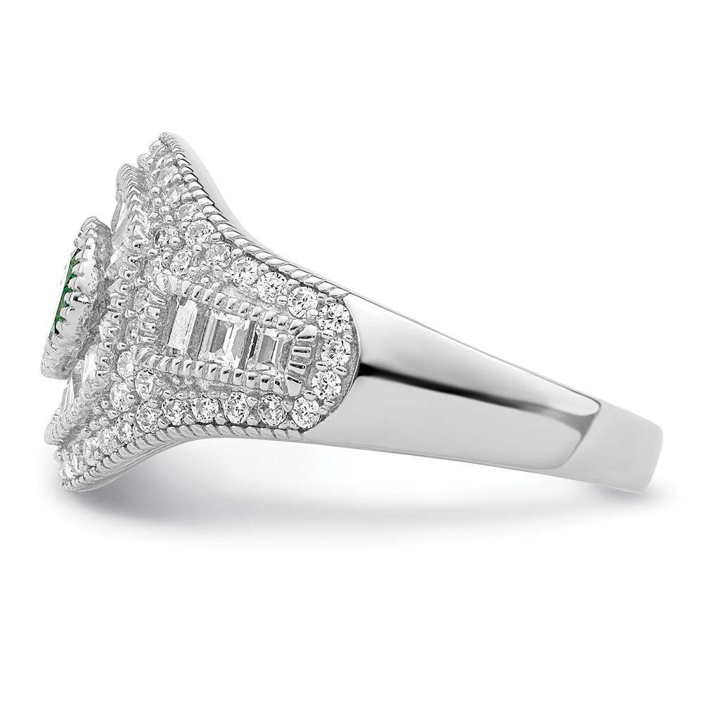 Material: Primary - Purity:925|Finish:Polished|Stone Type_1:Cubic Zirconia (CZ)|Stone Type_2:Cubic Zirconia (CZ)|Stone Color_1:Green|Stone Color_2:White|Stone Quantity_1:1|Stone Quantity_2:89|Material: Accents:Rhodium|Plating:Rhodium|Material: Accent Color 1:Silver Tone|Band Width:2.66 to 6 mm (tapered)|Head Height:3.85 mm|Material: Primary:Sterling Silver|Completeness:Complete (all stones included)|Stone Shape_1:Round|Stone Shape_2:Irregular|Stone Treatment_1:Synthetic|Stone Treatment_2:Synthetic|Width of Item:13.3 mm|Engravable:Not Recommended|Product Type:Jewelry|Jewelry Type:Rings|Sold By Unit:Each|Gender:Women's|Material: Primary - Color:White|Ring Type:Rings with Stones|Ring Top Length:13.3 mm|Stone Creation Method_1:Synthetic|Stone Creation Method_2:Synthetic All weights and measurements are approximate and may vary slightly from the listed information. Welcome to diamond_6720 Payments We accept all Ebay approved payment. Please sent the payment to us within 8 days after the auction has ended, or you will have unpaid case auto open by eBay. Shipping Policy We will ship all items within 1 business days of purchase during the work week (M-F) excluding holidays. If you order on Friday, your order will be shipped the following business day. Tracking will be provided when it becomes available. We will only ship to a PayPal Verified Address. Please make sure your address is current and correct. If the information does not match, your order may be canceled. Buyers are responsible for all customs, duties and taxes for your respective countries. Delivery times for International Shipping will vary. California Buyers Pay 9.0% Tax on all orders. case auto open by eBay. Return Policy & Exchange Returns or Exchange are accepted. Buyer must contact us within 30 days after the item is received. Item must be returned in unworn and resalable condition. We will only issue a refund for the purchase price, excluding any shipping fees. If we are at fault, we will provide a full refund. Buyer is responsible for all return shipping costs. BUYERS FEEDBACK If you have any concerns regarding your purchase, please contact us via eBay Message, we assure you that a satisfactory resolution will be reached. Your feedback is very important to us Do remember to give us 5 star rating(*****) if you are satisfied with our product & service .