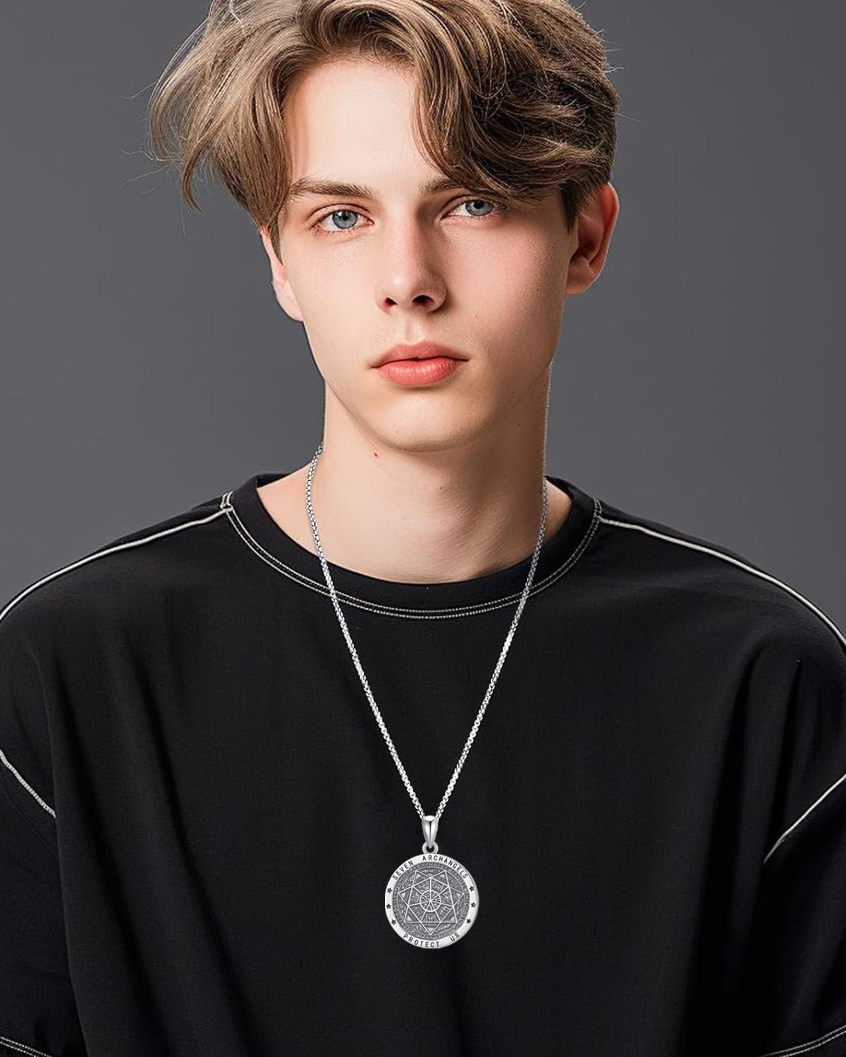 ❤The Seal of Seven Archangels - The Seven Archangels Amulet necklace protects us from evil, jealousy, and negative energy. The seven archangels are Michael, Gabriel, Raphael, Tzafqiel, Tzadkiel, Samael and Haniel. Whether you're seeking protection, guidance, or spiritual assistance, this powerful amulet will help you connect with the archangels and access their divine powers. ❤Material - Seven Archangels pendants are made of S925 Sterling Silver, stainless steel 3MM chain, giving the necklace a brilliant appearance and excellent texture, as well as durability and long-term value preservation. ❤Measurements - The Seven Archangels pendant size is 29*29mm(1.14*1.14 inch), 3.0 mm Box Chain Length: 22"+2" extender. ❤Meaningful Gifts - The seal of the seven archangels represents divine protection and guardianship, allowing the wearer to connect with the power of protection and balance. It serves as a reminder to seek inner balance in daily life and to remain steadfast and courageous in the face of challenges. It can also be given as a gift or souvenir to express blessings and good luck. ❤Customer Service - Jewelry is committed to providing the best jewelry and services to our customers. If you have any questions, please let us know and we will solve them for you.