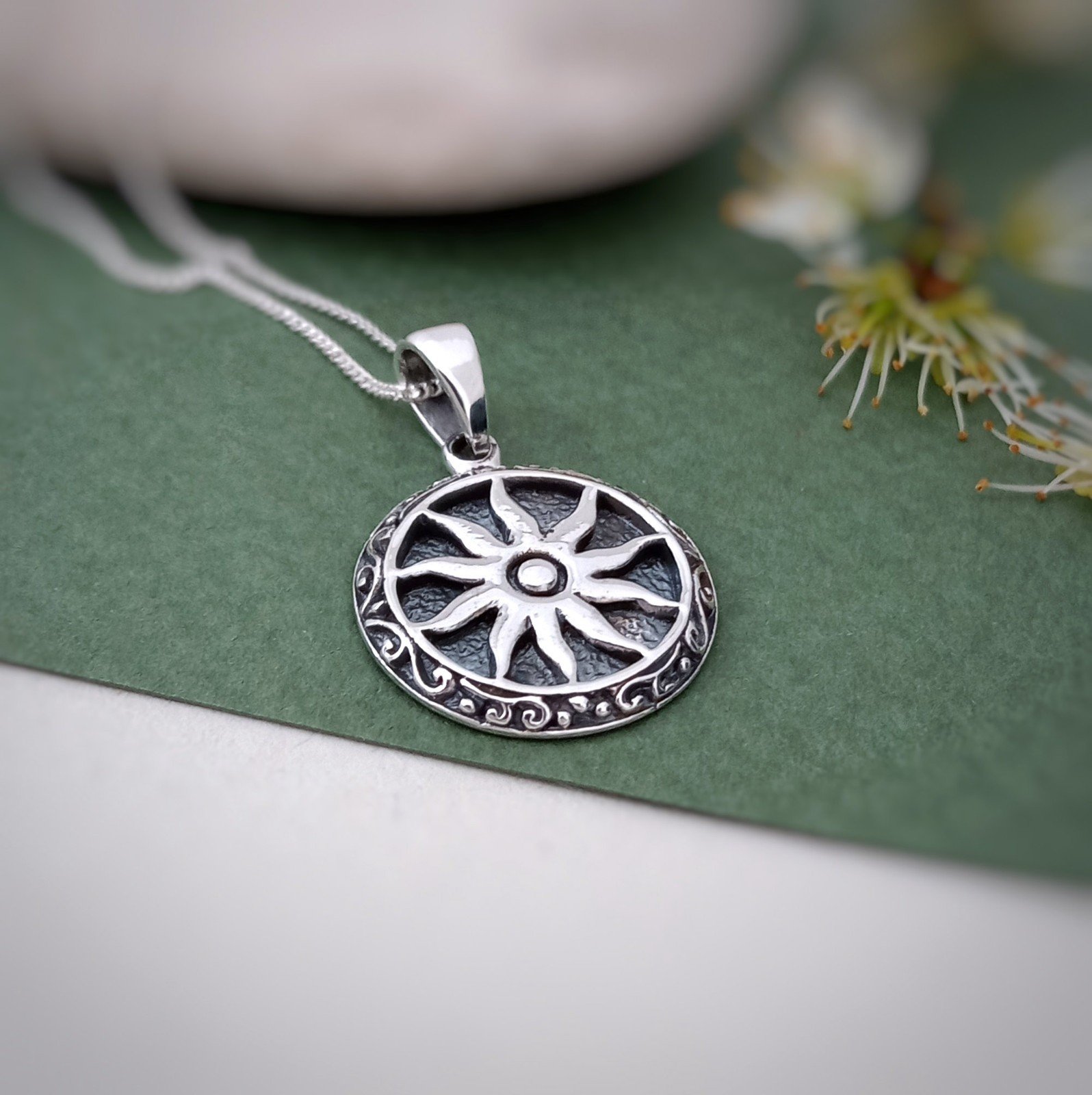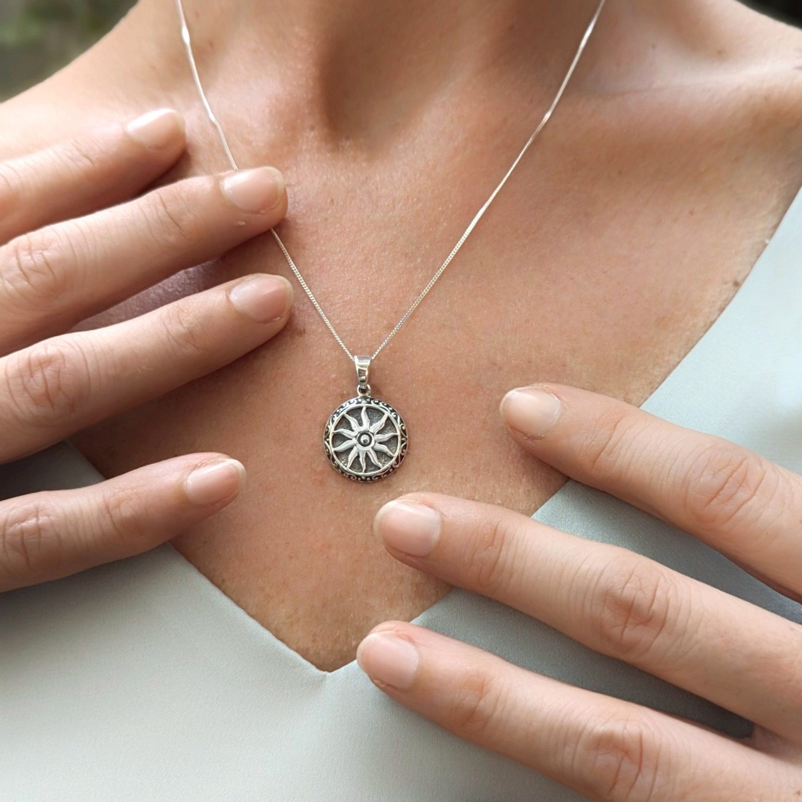 Mandala Sun Coin pendant in sterling silver. Nickel FREE Discover the radiant warmth of our Sun Coin Pendant necklace, a celestial-inspired treasure for both men and women. Symbolizing vitality, enlightenment, and eternal energy, the sun holds profound significance across cultures and time. This pendant serves as a meaningful gift, representing strength, positivity, and new beginnings. Perfect for celestial enthusiasts, it adds a touch of cosmic charm to any outfit. Illuminate your loved one's life with this symbolic token of light and power! Chain is NOT included. You can select 5 different lengths from the drop down menu at added cost. Dimensions: Average weight: 3 g. Drop Length: 2.4 cm (including bail) Diameter: 1.6 cm Delivery Information All items dispatched from the UK. Item will be carefully packaged in eco-packaging to safeguard it during delivery and our branded satin pouch ready as a gift. Standard Tracked 48 Shipping with Royal Mail or Yodel included FREE . Tracking number details will be sent after dispatch (which is usually within 1 working day of purchase. Weekends/festivities excluded). Faster shipping options also available for the UK. Worldwide shipping available with Royal Mail Tracked & Signed or Evri. ***Update from September 2025 For USA customers*** All orders to the USA will be sent with Royal Mail International Tracked. Nidra Collections will pre pay the duty on ALL US orders so you don't have to which should also streamline and speed up customs formalities in the USA. Any delays or further taxes requested are out of our control and not our responsibility. Returns accepted within 14 days of receipt. At customers’ expense.