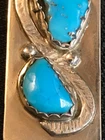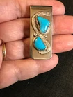 Southwestern style money clip. The snake and bezel tested silver. The clip is German silver, I believe. It's 3/4" wide x 1-3/4" long and it's unsigned. The condition is very good, preowned. The stones look like Sleeping Beauty turquoise, but I'm not an expert so that's a guess. The clip is sold AS-IS, so please look closely at the pictures for more details and condition information. Feel free to ask any questions. I recommend that you clean all jewelry before wearing. Please be aware that your state sales tax will be added to your invoice. This is done automatically by eBay. I have no control over it, or the ability to remove it. The fine print: All used or preowned items are sold AS-IS . I buy most of my items from estate and private sales. This is a preowned item, so please look at all the pictures carefully for further condition information and ask any questions before bidding. I will try to answer them to the best of my ability. I sell vintage, not new, so please take into consideration that your item may not look brand new. Normally, I do not clean or polish my vintage items outside of a light dusting or damp wipe. I'll leave that to your discretion. Regarding jewelry: I am not a jeweler, so my interpretations of stones are what I believe they are and should be considered for description purposes only and are not guaranteed. Marked metals will be described as marked (gold, sterling, pewter, etc.). Any items you see in the pictures used for display or size reference (coin, bill, jewelry stands, etc.) are not included in the sale. Please note that some color tones in the pictures may be a light reflection from my camera, my clothing, but more than likely, my bad photography. Checkout is through eBay and normally I only ship to the USA. For International buyers: I will only ship through eBay's Global Shipping program. Any additional shipping costs or customs fees are the responsibility of the buyer. All measurements are approximate. All sales are final unless I make an extreme error in my ad. If there is a problem with an item that you have purchased from me, please let me know as soon as possible. I am an honest seller and will always work with you to try to make things right. Shipping prices are not refundable. Please make sure you carefully read the auction description, ask your questions, and really want the item before you bid. This said, there are absolutely no returns on “LOT” items, or anything stated "AS-IS". I ask that you please make your payment within 2 days of auction end. I reserve the right to relist my auction if payment is not made within 4 days of auction end. Please note that eBay will automatically open an unpaid item case against all buyers that do not pay within those 4 days. Notify me as soon as possible if you are bidding on some of my other items and want combined discounted shipping. I will always combine shipping to save you money whenever possible, if I can get all the items in one box . I try extremely hard to ship within one business day of receiving payment. Please note, I do not have a pet free home . Thank you for looking.