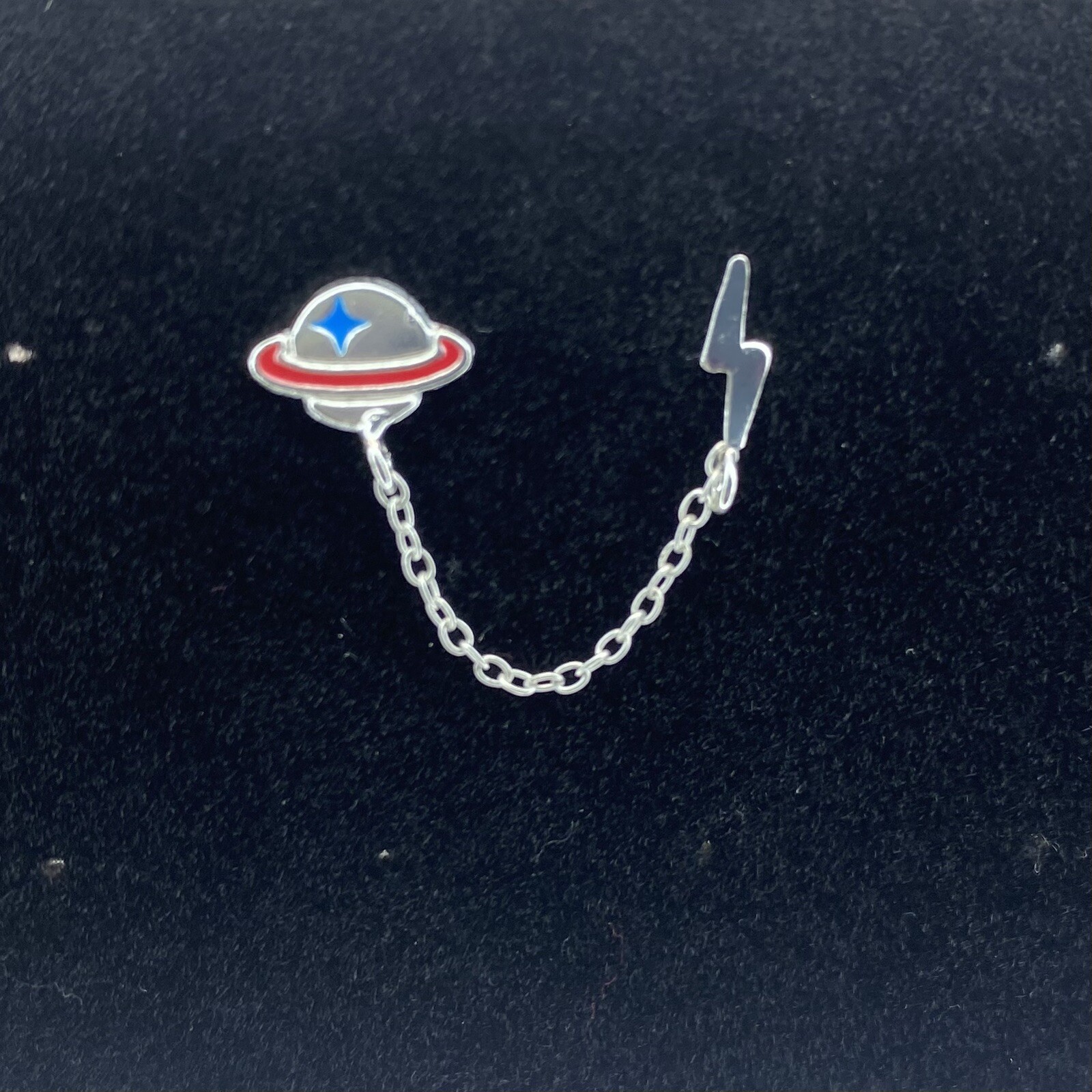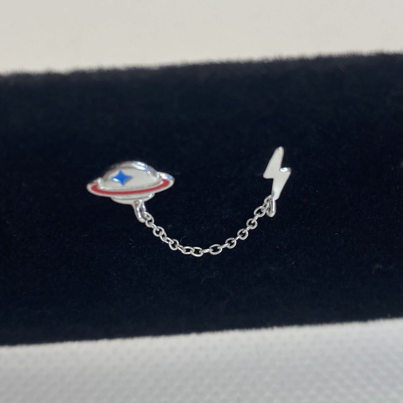Sterling Silver Enamel Saturn and Lightning Bolt Double Stud Earrings with Chain See photos for representation of the actual items available. Feel free to contact me with any questions. Make a statement with these unique double stud earrings featuring the planet Saturn and a lightning bolt design, connected by a delicate chain. Crafted from high-quality sterling silver and colorful enamel, these earrings are perfect for any occasion, be it Christmas, Graduation, Anniversary or Birthday. The butterfly closure ensures a secure fit on both cartilage and lobe areas. These earrings are a perfect representation of beauty, nature and space, making them a great addition to any jewelry collection. Shop our store with confidence as we offer 30-day returns on all purchases. Additionally you can save money by making multiple purchases to take advantage of our discount shipping policy. You will pay the highest shipping cost for a single item in your cart and $3 for each additional item.