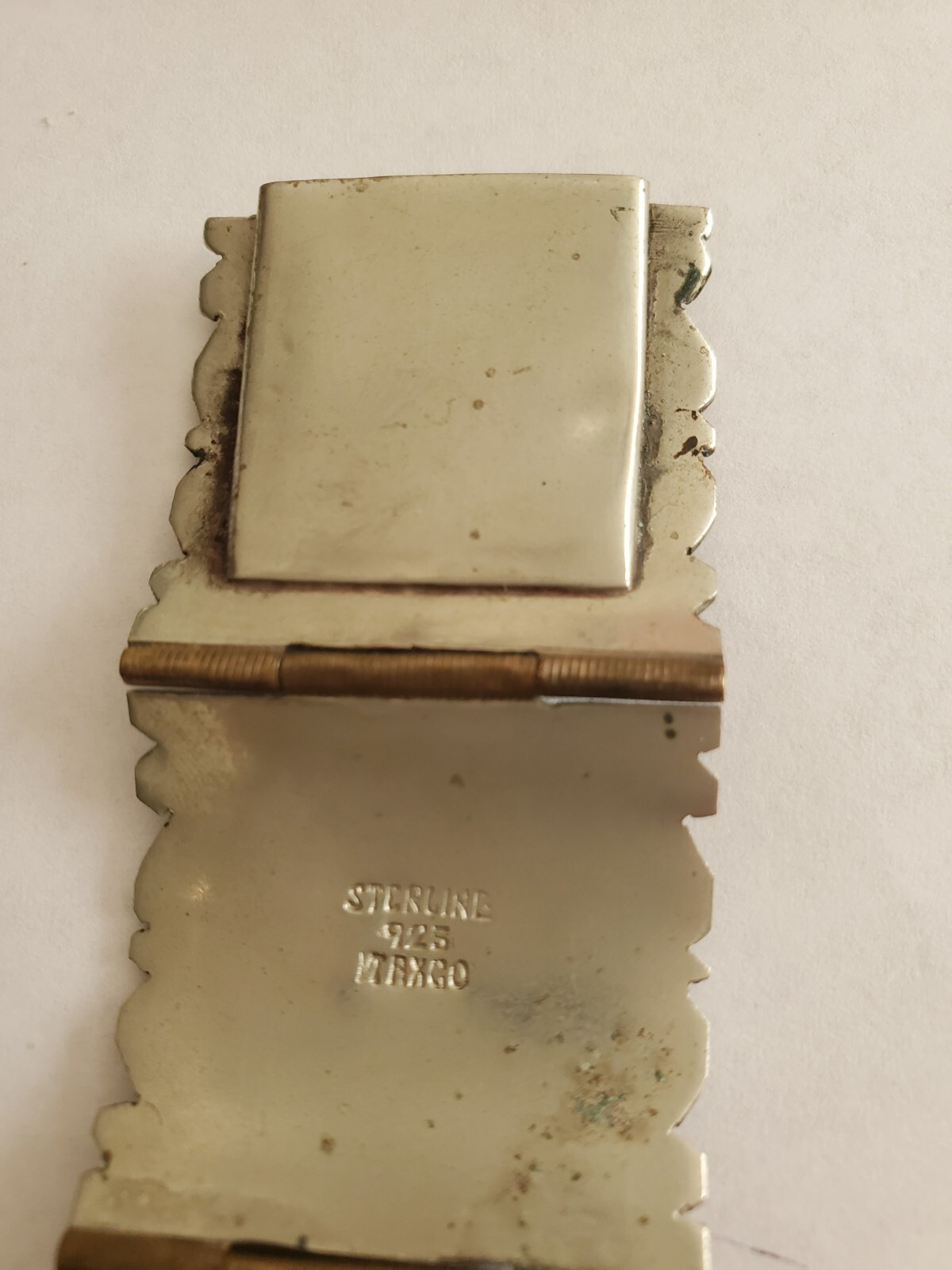 This is a sturdy bracelet that weighs 55 grams. Each of the six links are approx an inch in height and width..It is marked sterling Mexco 925.
