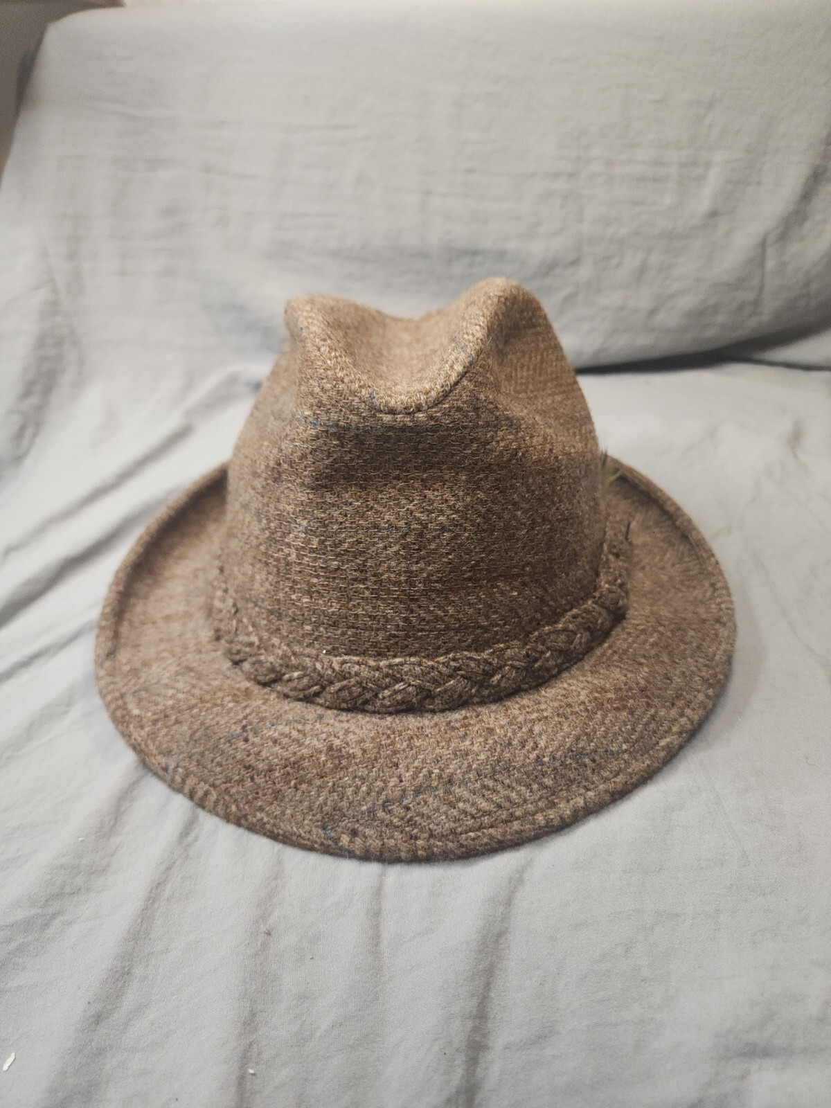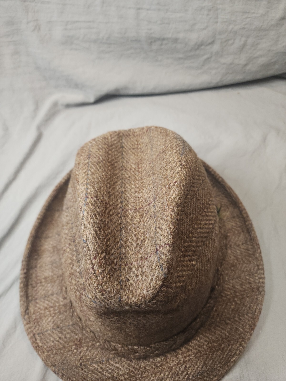 Stetson Fedora Wool Blend Brown Plaid Fedora Hat Size L/XL.
