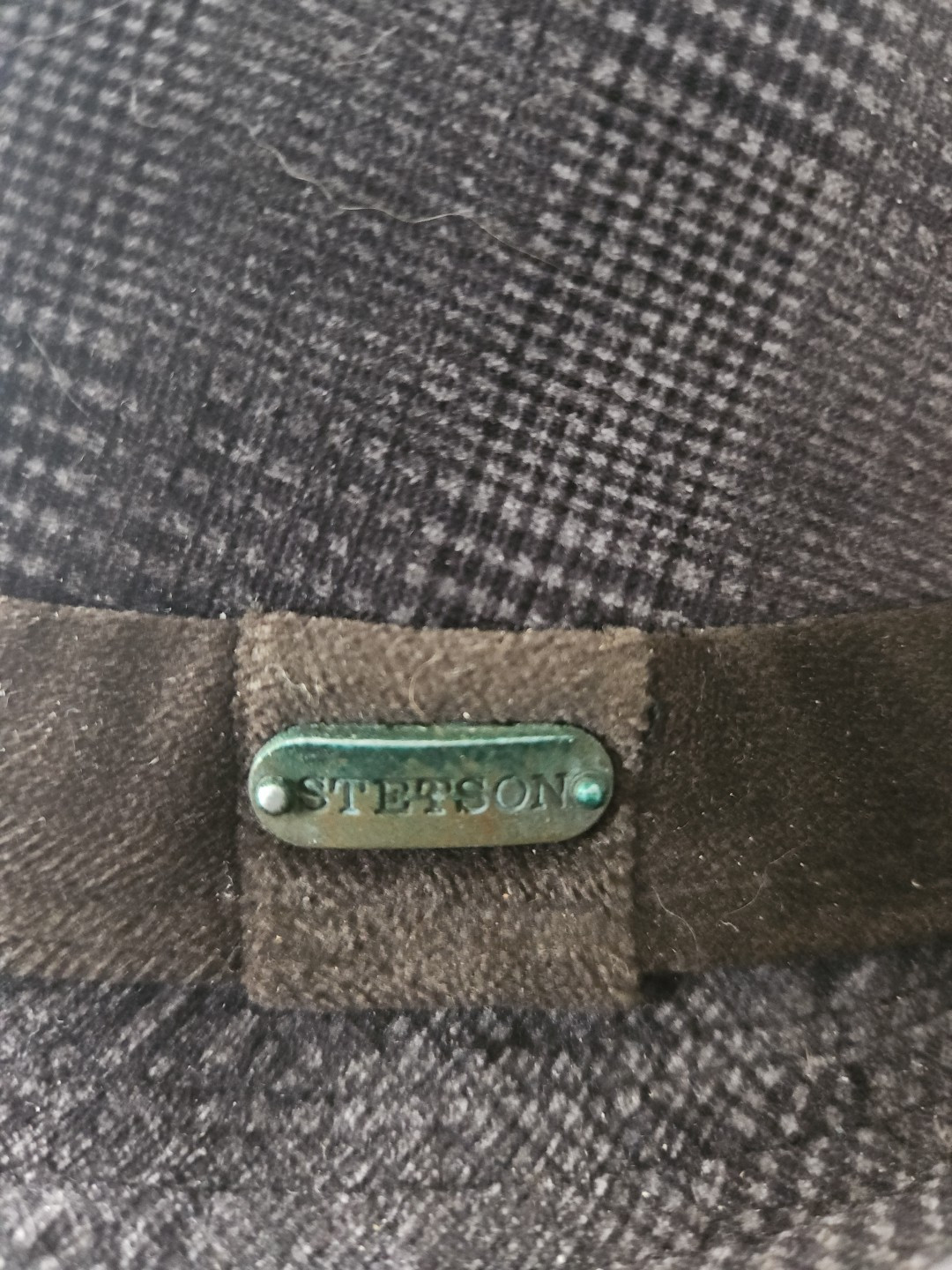 This black plaid Stetson Fedora is a stylish addition to any wardrobe. Made from a polyester blend, it is lightweight and breathable, making it perfect for all seasons. The hat features a classic style with a black band and Stetson branding on the inside of the silk. It comes in size M and is signed by the brand. The Fedora is perfect for any occasion and it is self-adjustment. This Stetson Fedora is a must-have for anyone looking to add a touch of class to their outfit.