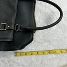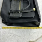 Steve Madden satchel handbag in black pebbled faux leather with gold-tone hardware accents. This structured bag features a unique front flap pocket with buckle-style strap details and a signature logo bar. The spacious interior is lined with a repeating brand logo print and includes multiple organizational pockets, while the exterior back offers a convenient zippered compartment for quick-access items. Dual rolled top handles and a side zipper detail complete this sophisticated everyday accessory. ** Shoulder strap not included *** Brand: Steve Madden Material: Faux Leather Color: Black Hardware: Gold-tone Closure: Magnetic Snap & Zipper Lining: Logo Fabric Pockets: Front Flap, Back Zip, Interior Zip, Interior Slip Handle Style: Dual Rolled Handles (shoulder strap not included) Pattern: Pebbled Style: Satchel Shape: Trapezoid Accents: Logo Bar, Buckle Straps See photos for measurements. Ships from a pet friendly, smoke-free home. Professional, Office, Chic, Minimalist, Classic, Vegan Leather, Work Bag, Commuter, Sophisticated, Edgy, Designer, Streetwear, Versatile, Large Satchel