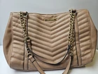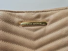 Nice Steve Madden Tan And Gold Quilted Purse has some small wear marks that are shown in the pictures.