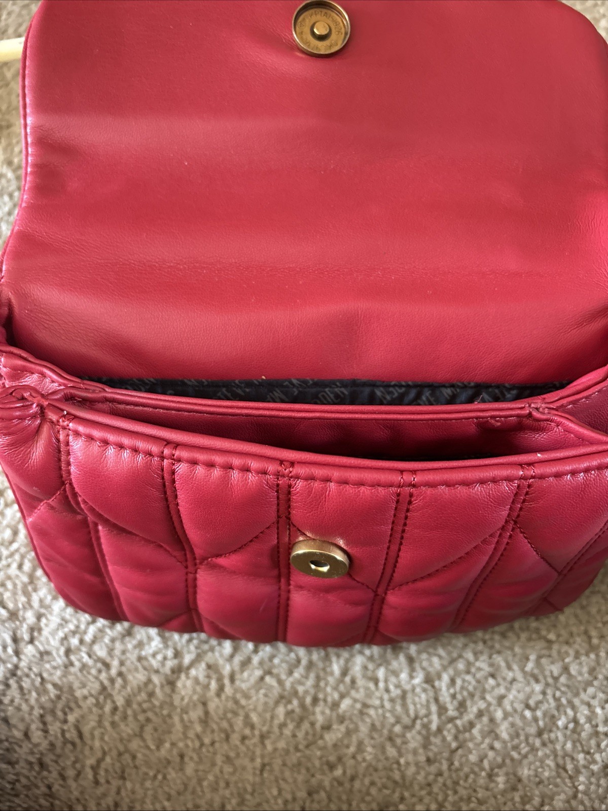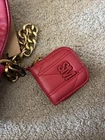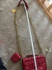 Super cute Steve Madden crossbody bag with bonus little pouch attached. Beautiful gold chain strap. Still has tag but has a little wear from storage. Magnetic snap shut top with handle. Soft quilted pattern. The perfect little red bag. Approximately 9 inches across by 6 inches high.