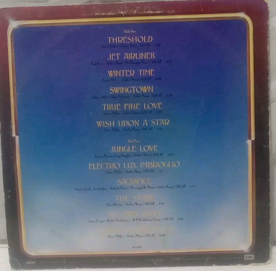 This is an original vinyl LP record by the Steve Miller Band titled "Book Of Dreams" released in 1977 by Capitol Records. The record is in a cardboard sleeve and features a black vinyl material. It is a 33 RPM album in 12" size, belonging to the rock genre of the 1970s. The LP includes original inner sleeve and cover, and has been ultrasonically cleaned.