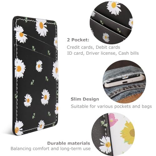 Return Policy Fast Delivery Trusted seller Phone Wallet Stick on, Leather Phone Card Holder Credit Card Pocket for Back of Phone Case Sticky Wallet for iPhone and Android - 2Pack Black Product Description Durable Leather Material-Much cleaner, more durable, and more elegant than traditional cloth and silicone material. Just take a phone with this stick on wallet. No worry that the card or money may loose or forget. Strong Adhesive-This phone pocket attaches to your cellphone with super strong adhesive for a strong, firm, attachable, long-lasting effect. Especially during business, exercise, go travelling, in the gym, running, doing sport. Flower Pattern-The floral and texture is versatile enough to go with any outfit. Even in winter, the flowers of our leather credit card holder still bloom for you. Double Pocket-This phone sleeve with 2 layer, double pocket design, with much more storage than others, you can easily put your credit cards, Debit Cards, ID Card, Cash etc. UNIVERSAL SIZE: 2.5*3.7 inch. Our cell phone wallet compatible with most of smartphones or phone case with a flat back. such as the iPhone 14/14ProMax/14Pro/13/13PRO/X/XR /8,Samsung Galaxy S10/S10 Plus/S9/ S8,Note 9....It can also be sticked on the desk, iPad, computer, car and etc. Shipping Returns Payment Shipping Shipping is FREE to all addresses other than APO/PO boxes in the lower 48 states. All our stock ships from US-based warehouses. Shipped via USPS or UPS (depending on location and package weight) Unless stated otherwise, all orders will ship within 24-72 hours of your payment being processed. Check our feedback to see the great reviews of FAST shipping we offer. Returns Seller does not accept returns Payment We currently accept payment via eBay managed payments only. Once payment is cleared, we will dispatch your shipment within 1-3 business days. Please refer to the "Shipping" tab for more information regarding shipping speed to your destination.