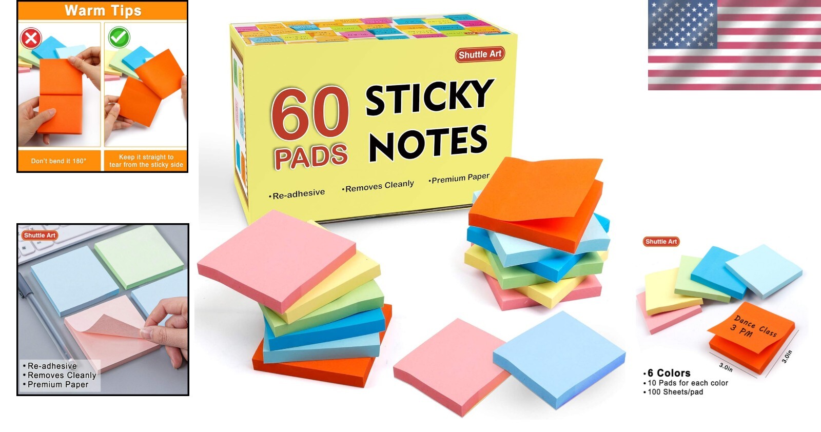 Adhesive Sticky Notes Elevate your organization game with our delightful and practical Adhesive Sticky Notes. With a generous pack of 60 pads , each boasting 100 sheets , in a spectrum of 6 vibrant colors —pink, yellow, green, blue, light blue, and orange—your messages will stand out with beautiful visibility. Features: 60 Generous Pack: Enjoy long-lasting use with a combination of colors that make every message pop. Portable Size: Each sticky note measures 3x3 inches , providing the perfect space for your notes while being compact for easy portability. Quality Paper: Crafted from paper that resists curling, ensuring your notes stay intact and adhesive long enough to be effective. Unlimited Uses: Stick them on walls, blackboards, desktops, or refrigerators—ideal for reminders, lists, and notes. Service Guarantee: Customer satisfaction is our top priority. If you encounter any issues, feel free to out. Benefits: Bright colors enhance visibility and ensure your messages capture attention. Perfect for home, school, and office, catering to a diverse range of uses. Easy to remove without leaving a trace—maintaining the integrity of your surfaces. A substantial total of 6000 sheets to keep you organized throughout your daily activities. Why Choose Our Sticky Notes? Choose our Adhesive Sticky Notes to add a splash of color and functionality to your life. Whether you're jotting reminders at home, updating your office space, or helping keep a classroom organized, these sticky notes provide the ideal solution. Enjoy peace of mind with high-quality materials designed for dependable use and a customer service team ready to assist. Don't wait any longer to bring order to your notes and reminders; order your Adhesive Sticky Notes today! Model: Sticky Notes MPN: Sticky_Notes Type: To Do List Sticker Country/Region of Manufacture: Sticky Notes