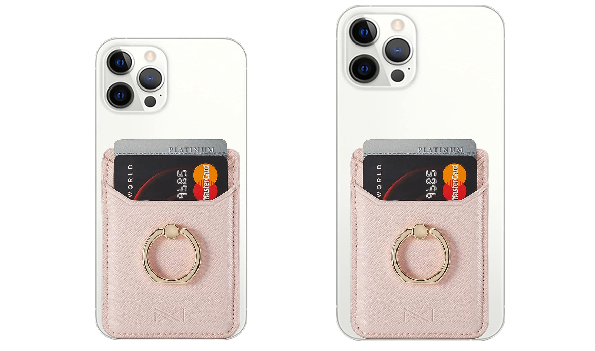 IMPORTANT NOTICE: In case that you have glass back phones and Silicone phone case such as Compatible With iPhone 14/14Plus/14ProMax/14Pro/ iPhone 13/13Pro/13Pro MaX/13Mini/12/12Pro/12Pro MaX/12Mini/ iPhone 11 ,iPhone 11 Pro ,iPhone 11 Pro Max,XR, Xs max, X, iPhone 8, iPhone 8 plus /S20/S20Ultra / NOTE10e/Note10/ NOTE10 Plus we recommend you to use an appropriate phone case.In fact the attach adhesive is replacement. 2 halves is designed for easy remove to protect the glue Fit cards:This Card holder for back of phone wallet is able to fit 2 cards.Material:PU Leather;Color:Gold+Pink; Size:around 3.7*2.6 inch.Applied in: Business meeting/daily office use/during exercise/travelling/in the gym/running/doing sport. Adhesive Card Holder for Back of Phone Sticky SECURE: Back Adhesive tape much better than the 3M versions Stick on card holder the market with Sturdy Adhesive backing for a strong, firm, long-lasting hold.It won't lose strength due to pocket heat, light moisture or sweat with you at all times such as your debit card, credit card, driver's license, bus pass, train pass, business cards and more. New Credit card holder for phone Phone Pocket 360 Degree Rotation Ring Stand A combination of credit cards holder and phone ring stand. The card holder allows you to easily hold cards,The finger ring can grip your phone more comfortable and safe; it used as the stand which is more convenient when watching films etc.