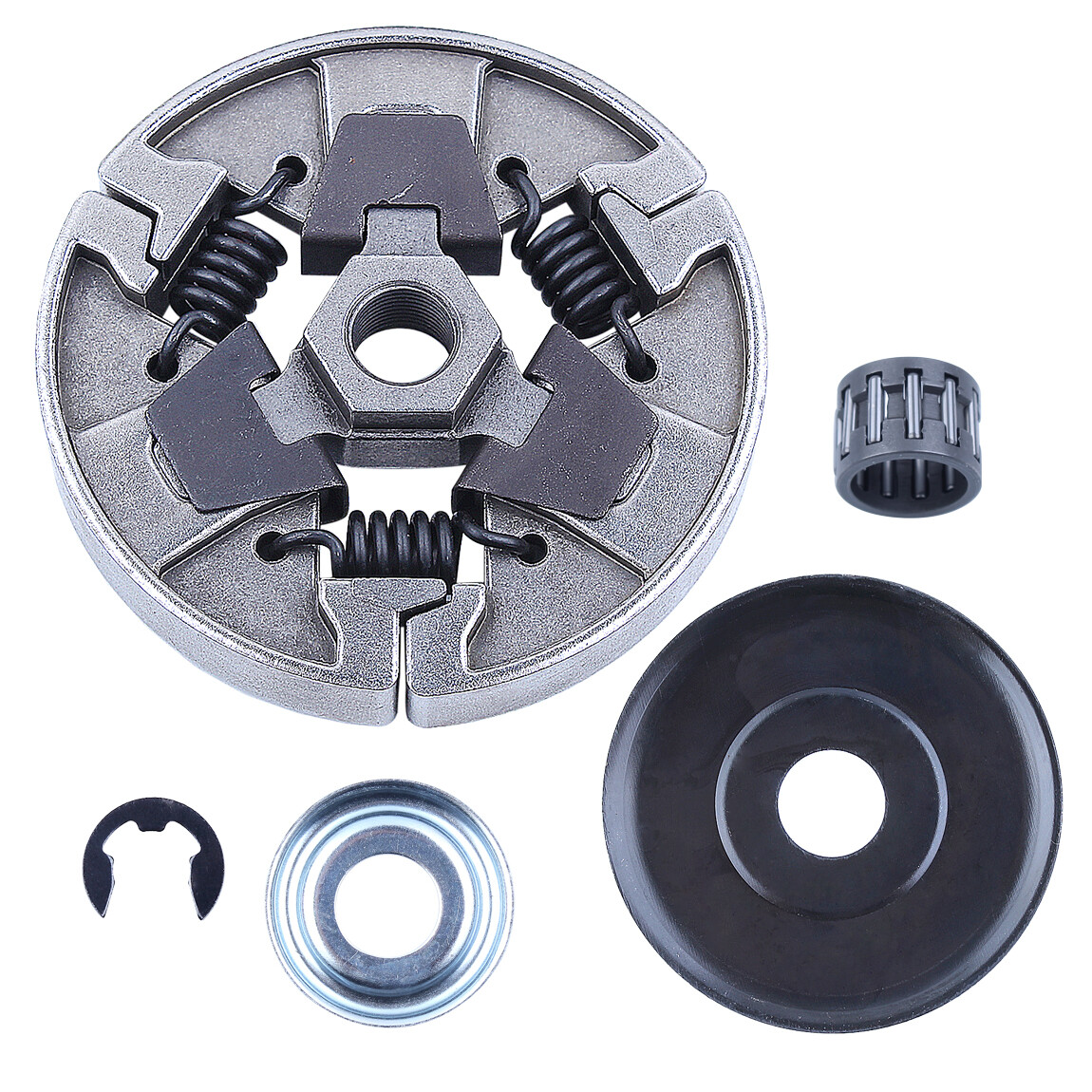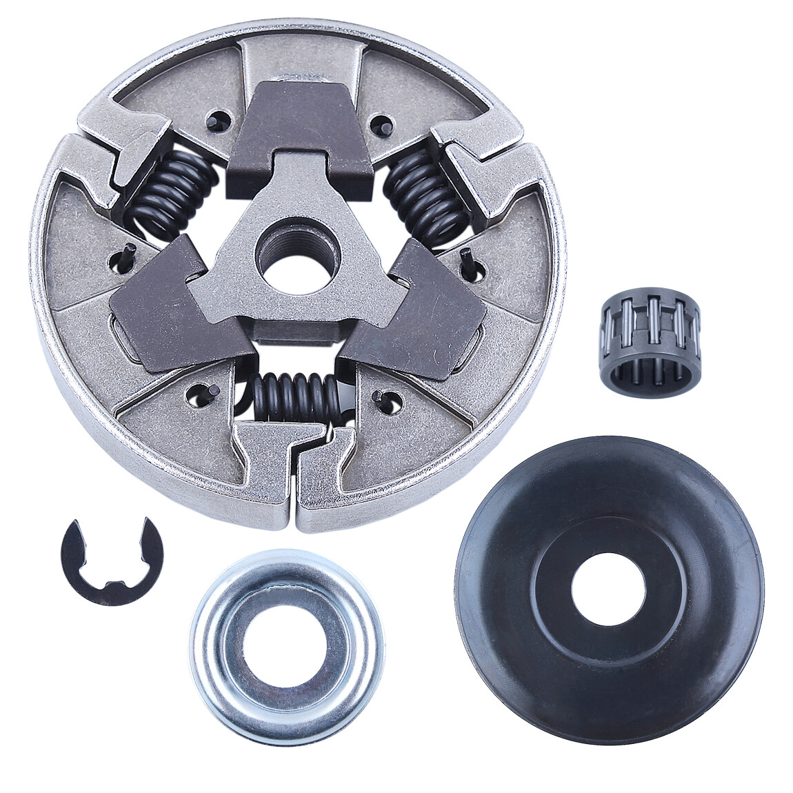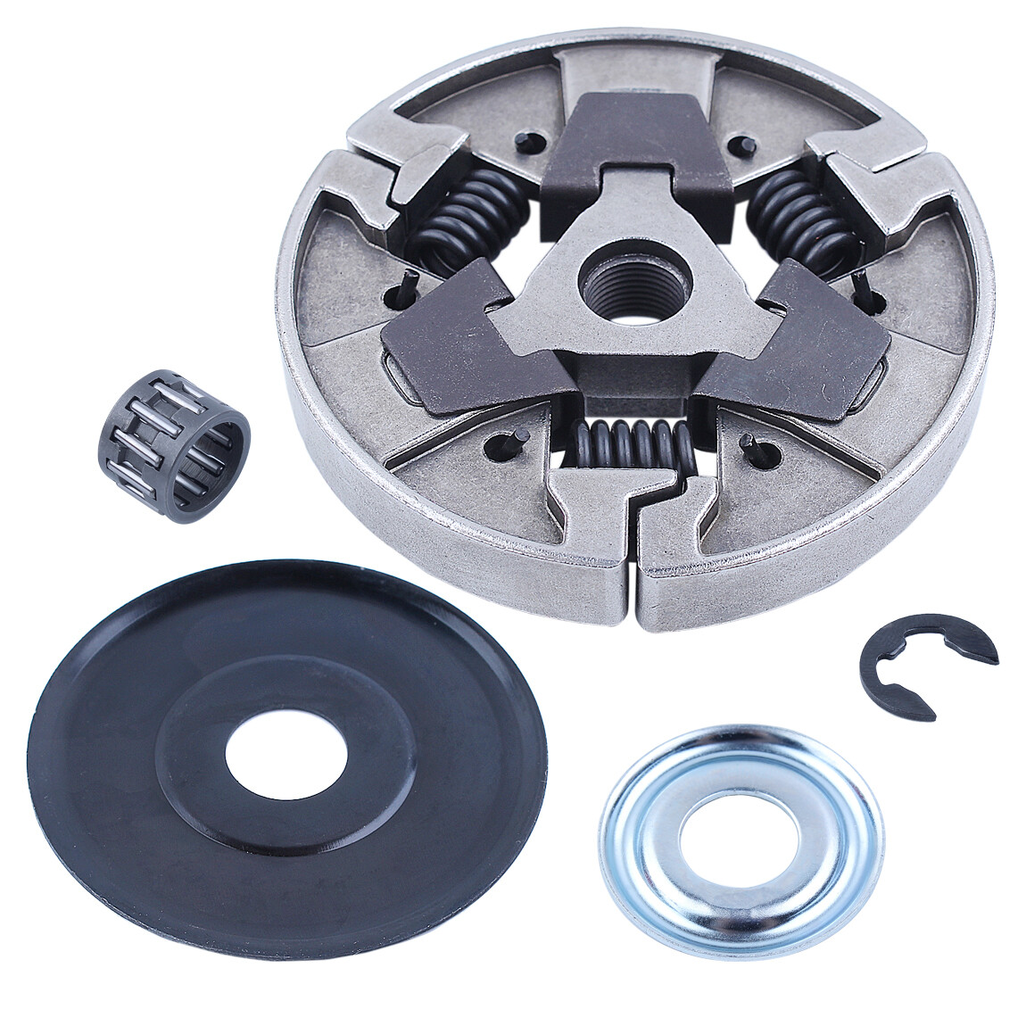 Clutch Assy Washer For Stihl 024 026 MS240 MS260 MS260C MS261 MS261C MS271 MS280 MS280C MS290C MS291 Description For Stihl MS261 MS261C MS271 MS291 024 026 MS240 MS260 MS260C MS270 MS270C MS280 MS280C MS290C Chainsaw Replace OEM For 1121 160 2051 Package include 1 x Clutch Assy, 1 x Clutch Washer, 1 x Cover Pan, 1 x E-clip(bigger than pictures one), 1 x Needle Bearing Notice : Please compare the model, style and size of the item before you placing order. Welcome to contact our customer service crew if you have any questions. http://stores.ebay.com/ accpada Use this link to check out our eBay store for more items. Payment: Only Paypal Accepted Shipping Policy : We’ll ship your order within 1-2 days after the transaction. Please confirm your address before placing the order so that you can receive goods quickly. Return Policy and Warranty: 1.We offer 30 days money back guarantee and 2 year s warranty . 2.We offer buyers free return service. If you are not satisfied with our items, please contact our customer service crew to get a return address.You do not need to pay the return fees.If the parts were damaged during shipping or have other problems, please send us a description of your problem or take a picture of your item and send a message to our customer service crew. They will resolve your problem as quickly as possible. Feedback : 1.We maintain a high quality service,we would always like to help you for your 100% satisfaction and offer a service with sincerity. 2.Feedbacks are important to us.We hope that you contact our customer service crew immediately before you write a neutral or negative feedback,please give us a chance to solve your problem.If you have some problems,send our customer service crew a message without hesitation.