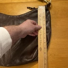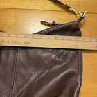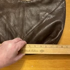The Stone Mountain Brown Pebbled Leather Shoulder Bag is a classic and stylish hobo tote bag that is perfect for everyday use. Made from high-quality leather with a pebbled finish, this rectangle-shaped bag features a brown shoulder strap for easy carrying. The zip closure, lined interior, and inner pockets provide functionality and organization for your essentials. This is a pre owned purse but is in great condition please see pictures and measurements