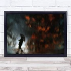 Street Puddle Reflection Silhouette Umbrella Leaves Wall Art Print