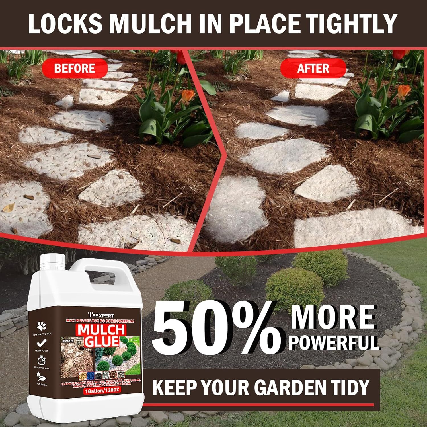 Specific Uses For Product Mulch Glue for Landscaping, Rubber Mulch Glue, Gravel Binder, Pea Gravel Stabilizer, Mulch and Rock Glue Mulch Glue for Landscaping, Rubber Mulch Glue, Gravel Binder, Pea Gravel Stabilizer, Mulch and Rock Glue Material Acrylate copolymer Compatible Material Rubber Mulch, Pea Gravel, Wood Bark, Pine Straw, Small Pebbles Item Form Liquid Mulch Glue for Landscaping 1 Gallon, Strong Mulch Glue for Rocks, Mulch and Rock Glue for Landscaping, Fast Dry Pea Gravel Glue Stabilizer, Landscape Rock Glue for Stone/Bark/Pine Straw Heavy-Duty Landscape Rock Glue: Teexpert mulch and rock glue is a powerful solution designed to hold mulch, wood chips, sand, pine straw, pebbles, stone, and pea gravel in place, providing a reliable and long-lasting bond. For the latest usage guidelines and dilution instructions, please refer to the User Manual in the product page Strong Adhesion with Safe Formula: Our rubber mulch glue starts as light blue when sprayed, but dries transparent within 6-24 hours, ensuring safety for people, pets, and plants. Not only does it prevent mulch from scattering during storms, but it also reduces the time spent sweeping and maintaining your landscape. Now, enjoy an ideal playground for family and pets Easy to Use & Durable Bonding: This mulch glue provides long-lasting effectiveness of 12 months, even in rain and sunlight. For landscape area, dilute with 10%-50% water and shake well to prevent clogging before spraying or pouring. For high-traffic area, mix directly with dry and clean base material without dilution For Optimal Results: Apply in warm(above 68°F), dry(humidity below 70%) weather conditions. And it's recommended to apply 2-3 thin coats to enhance adhesion for a stronger attachment instead 1 thick coat, allowing the first coat to dry for 24 hours before applying the next. Teexpert values each customer, for any inquiries, welcome to reach our dedicated support team for assistance. Prevent Garden Mulch Chaos: Compared to the high costs of regular messy garden management, this strong mulch glue offers a practive solution to most challenging issues. Prior to application, ensure a dry, clean base material for optimal adhesivbond between mulch layers.