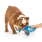 ® Strong 'N Silent™ Silent Swimmer™ Plush Orca is a durable, floatable, squeaky plush toy that only your dog can hear. The adorable, friendly orca is made with Chew Guard Technology® and Double Chew Guard Technology® to stand up to tough play, guaranteed. Double Chew Guard Technology® helps the orca float and dry quickly for playtime in and out of the water. This silent orca features ® Silent Squeakers™. Tuned to an ultrasonic frequency between 24 and 28 KHz, it is outside a human's hearing range but within a dog's. All humans hear is a puff of air, but dogs hear a traditional squeaker toy. Your dog can enjoy a wildly fun, squeaky toy without disturbing you or your guests. SILENT SQUEAKS: Built-in ultrasonic squeaker silently entices and excites dogs, so your dog can joyfully squeak away while you only hear a quiet puff of air; great for travel, work, night play, and when guests visit DURABLE PLUSH: Soft durable plush great for soothing cuddles, made more durable with Chew Guard Technology, a proprietary manufacturing process that adds a tear-resistant layer and reinforced seams to soft plush dog toys so they stand up to tough play, guaranteed PLAY: Orca plush is perfectly shaped for a game of toss with fun fins and tail ideal for carrying and solo playtime fun FLOAT: Double Chew Guard Technology underbelly features layers of tear-resistant lining for double the durability and a plush toy that floats and is quick to dry; making it great for dogs who like to play with their toys in and out of the water and drooly chewers DETAILS: Large plush orca is a great dog toy for medium to large dog breeds and a great cuddle buddy for smaller dogs; fun blue and white water pattern