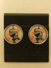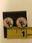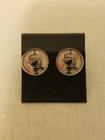 Stud Earrings Bird in Cage with Pink Rose 1/2" Round Acrylic with Silver-Tone Edging