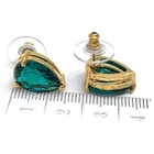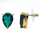 Emerald Green Czech Gem Gold Plated Stud Earrings In my many years designing for my many corporate and brand clients, in my characteristically over eagerness and passion for design I always produced far too many designs and sample sets to present to my clients when given a project! As a result I have an absolute treasure trove of completely unique never been seen before limited quantity never to be produced again designs which are my great pleasure to present. • Stud earrings gold plated metal alloy • Set with emerald green Czech crystals • Supplied in a gift box with certificate of authenticity • Dimension: 15mm x 10mm