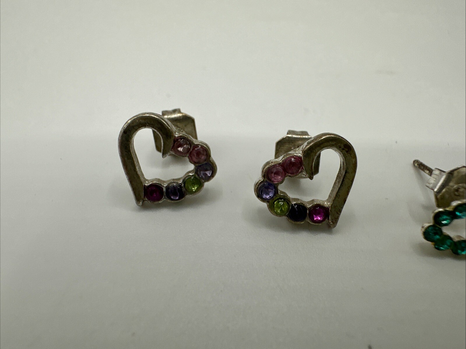 Studded rhinestone heart earrings in good, pre-owned condition. Clean and intact shape. Item kept in smoke-free home.