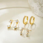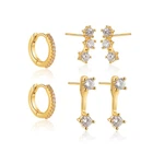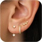 Gold Stud Earrings Set for Women 3 Pairs Huggie Hoop Jacket Studs Earring Stack for Multiple Piercing Trendy Jewelry Set