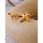 Add a touch of elegance to your look with these stunning stud earrings for women . Made from high-quality stainless steel and gold plating, these earrings are perfect for any occasion. The star-shaped design adds a unique touch, while the screw back closure ensures they stay securely in place. These earrings are versatile and can be worn with any outfit, whether it's a formal event or a casual day out. They are also handmade, making each pair one-of-a-kind. With their adjustable length and reversible design, these earrings are perfect for anyone who loves to accessorize. Get these beautiful stud earrings today and add a touch of glamour to your style. Material: Stainless steel + 18K gold plated Weight: 7g Size: 26x26mm Water, Sweat, Heat Resistant (No Discolouring or Tarnishing) - Please check this matching necklace: https://www.ebay.com.au/itm/204827604274 * If you wish to order these earrings multiple times please send me a request via private message * Visit and follow our eBay store for a wide jewelry collection: https://www.ebay.com.au/usr/adinajewelryboutique