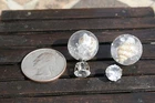 Stud earrings, clear glass on the front (3/16" dia.), big resin ball wrap sea shell inside (5/8" dia.), silver or gold color.