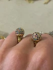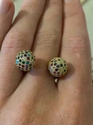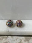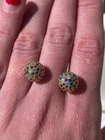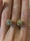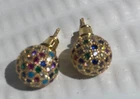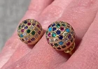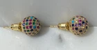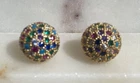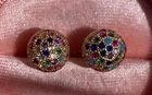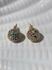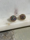 Stud earrings in gold with colourful shiny CZ stones. Come with a cute organza pouch.