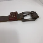 Studded Leather Belt Adjustable Brown Olive 31 in - 35 in waist 1 1/2in width