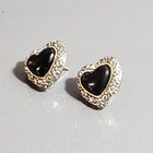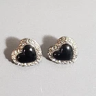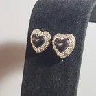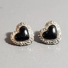 Up for sale is a set of heart earrings. They are silver tone and black in color. They are in good pre owned condition! Please view all posted pictures as they are part of the description. If you have any questions please ask. Please check out my store for more great deals that are listed every day!!