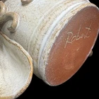 PLEASE NOTE PIECE HAS A SMALL CHIP ON 1 EAR (PHOTO #5) AND SOME WAX ON TOP OPENING (PHOTO #7) THERE ARE ALSO ROUGH EDGES ON THE BOTTOM OF THE PIECE, BUT I DON'T BELIEVE THEY ARE CHIPS. Piece measures 6.25"x5.5", base is 3" and opening is .75"