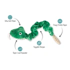 Snake Your Groove Thing! Petshop by Studio “Hisses & Kisses” is perfect for playtime, anytime. Made with a stretchable bungee and a super loud squeaker, your dog will be rattlin' all day. Great for all sized dogs and not intended for aggressive chewers. Super loud squeaker Crazy crinkle paper, Stretchable bungee Great for fetch and play Perfect for all sized dogs Toy is approximately 2.25” x 15”