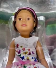 This is a 9" Sofia doll from the Kruselings collection by Käthe Kruse. Sofia has brown straight hair and brown eyes. She comes dressed in a beautiful white dress with butterflies and a pink belt and she is wearing a pink headband with a white flower. She holds a matching pink pocketbook, she looks so sweet. The set includes a hair brush, shoes, and a leaflet. The doll is in its original packaging and is in mint condition as it was never removed from the box. For over a hundred years there had been peace in Dreamland. Then monsters emerged. Five Brave Girls were sent out to save the dreams of the world. Sofia was one of them. Sofia is from Lima, Peru. In her exciting city she always find inspiration for fresh new ideas. She likes to spend her time outdoors. She loves animals and plants and everything that is alive. Local Pick up is also available in Boca Raton, FLorida.