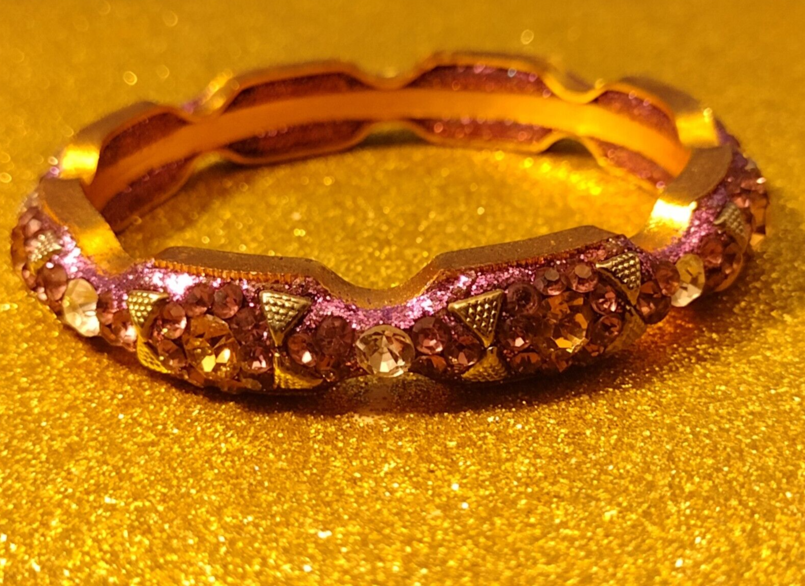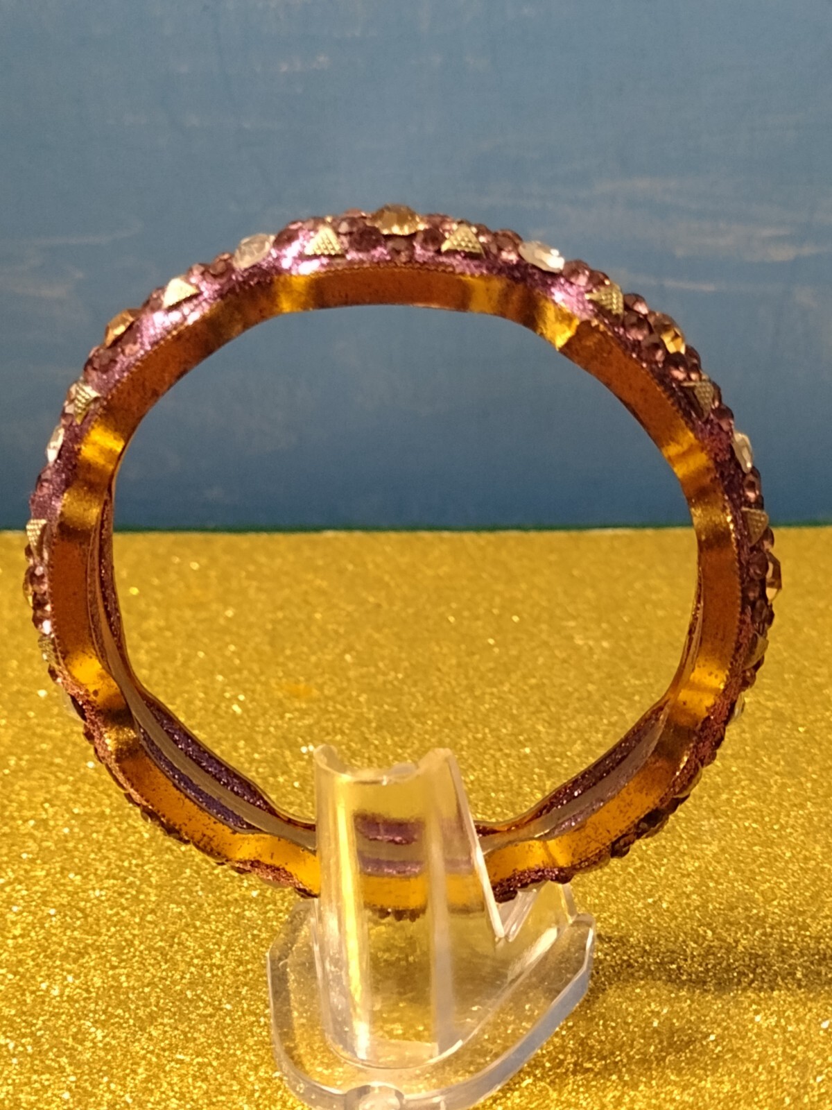 AMETHYST AND CITRINE RHINESTONES BANGLE BRACELET Sparkling faux Gemstone Crystals in a brilliant Yellow Gold Tone Setting! Outer Diameter: 3' Inner Diameter: 2.5" NEW CONDITION * * * * * * * * * * * * * * THIS STUNNINGLY BEAUTIFUL RHINESTONE CRYSTAL BRACELET IS A QUALITY PIECE OF COSTUME JEWELRY YOU WILL LOVE WEARING! IT WILL BRING YOU MANY COMPLIMENTS! * * * * * * * * * THE GRAND GALLERY ACCEPTS AMERICAN EXPRESS DISCOVER MASTERCARD PAYPAL VISA For “Buy It Now” sales: Payment is due upon purchase of the item. All sales are final. The seller will ship this item after payment clears. DOMESTIC SHIPPING FOR THE U.S. The Grand Gallery ships domestically to any of the 50 United States. COST OF DOMESTIC SHIPPING For the shipping cost quoted on the listing page the buyer will receive these shipping services: · USPS PRIORITY MAIL SHIPPING. · USPS Postal Insurance: The item will be insured to the $ value it sells for. · USPS Delivery Confirmation tracking. PACKAGING The Grand Gallery uses official USPS approved strong corrugated shipping boxes to ship all items. The Grand Gallery has more than 10 years of experience in shipping valuable items, including antiques, delicate porcelain, artwork, jewelry, coins and medals, and decorative collectibles. OUR CUSTOMER SERVICE PLEDGE WE PLEDGE THE FOLLOWING TO ALL WHO BUY FROM US ON eBay * EXCELLENT AND FRIENDLY CUSTOMER SERVICE! * CAREFUL PACKAGING OF THE ITEM SOLD! * USPS POSTAL INSURANCE ON EVERY ITEM (based on the sold price)! * PROMPT SHIPMENT (within the time frame specified in the listing and by USPS)! * E-MAIL NOTIFICATION (via eBay) TO THE BUYER STATING WHEN WE SHIPPED! * E-MAIL NOTIFICATION (via eBay) OF THE USPS TRACKING NUMBER OF ITEM! PLEASE SEE OUR MANY OTHER CURRENT EBAY LISTINGS! CUSTOMER FEEDBACK Please add “The Grand Gallery” to your eBay list of Favorite sellers! We would really appreciate your taking a moment to leave us positive feedback. We always strive for a perfect eBay FIVE STARS feedback rating from our customers. Positive FIVE STAR feedback is very important because it allows us to continue selling on eBay as we offer you unique quality items at a fair price, with the lowest possible postal cost, and with USPS-insured PRIORITY shipping. PHOTOGRAPHY and COPYRIGHT All picture images in this eBay listing are the seller’s professional quality photography-work product and may not be reproduced in any form whatsoever without the prior express written permission of the author-photographer (this seller). Any accompanying descriptive and/or historical text appearing within the listing is the copyrighted work and intellectual property of this author (this seller) and may not be reproduced in any form whatsoever without the author’s prior express written permission. The item shown in the pictures of this listing is the same exact item you will receive. * * * * * * *