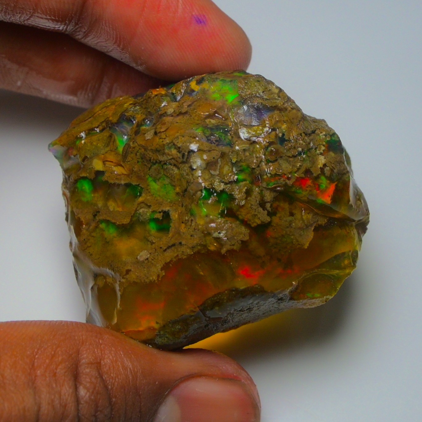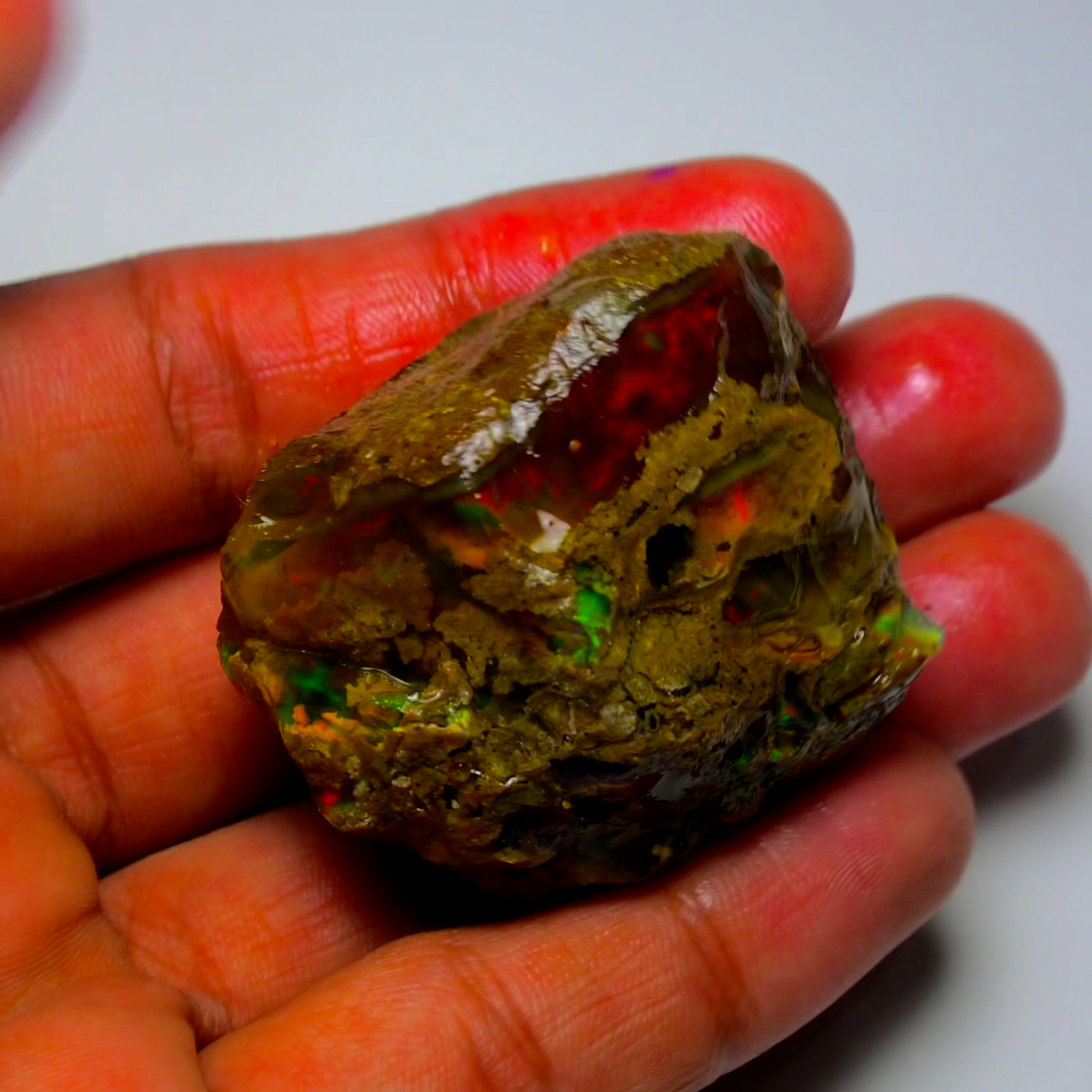 MOUNTAIN GEMS USA Genuine Gemstones, Guaranteed Authenticity Discover the Beauty of Ethiopian Opal Specimen Rough Experience the raw, unpolished beauty of Ethiopian opal, a gemstone renowned for its vibrant colors and unique play of light. This rough opal specimen offers a direct connection to the Earth's natural wonders. Key Features: * Type: Ethiopia Opal Specimen Rough * Weigh 169.20 [carats] * Size: 39X34 MM * Origin: Ethiopia, a renowned source of high-quality opal * Condition: Rough, unpolished specimen * Color: Multi Color with Fire Flashes About Ethiopian Opal: Ethiopian opal is prized for its vibrant colors, including blues, greens, yellows, oranges, and reds. It often exhibits a stunning play of light known as "opalescence." This phenomenon is caused by the diffraction of light within the stone's microscopic silica spheres. Note: * The colors and patterns in this specimen may vary slightly due to the natural variation of opal. * This is a rough specimen and may require further cutting or polishing to reveal its full potential. Shipping: * Free International Standard Shipping: Enjoy free standard shipping across the Globe. * International Shipping: Free Returns: * Free 30-Day Returns: Return the item within 30 days for a full refund, no questions asked. Payment: * Accepted Payment Methods: PayPal, credit cards, debit cards, Venmo, etc Additional Information: * Certificate of Authenticity: 20$ Extra for Cetificates * Custom Orders: We offer custom cutting or polishing services, drilling and whatever you want. By purchasing this Ethiopian opal specimen rough, you're acquiring a unique piece of nature's artistry.