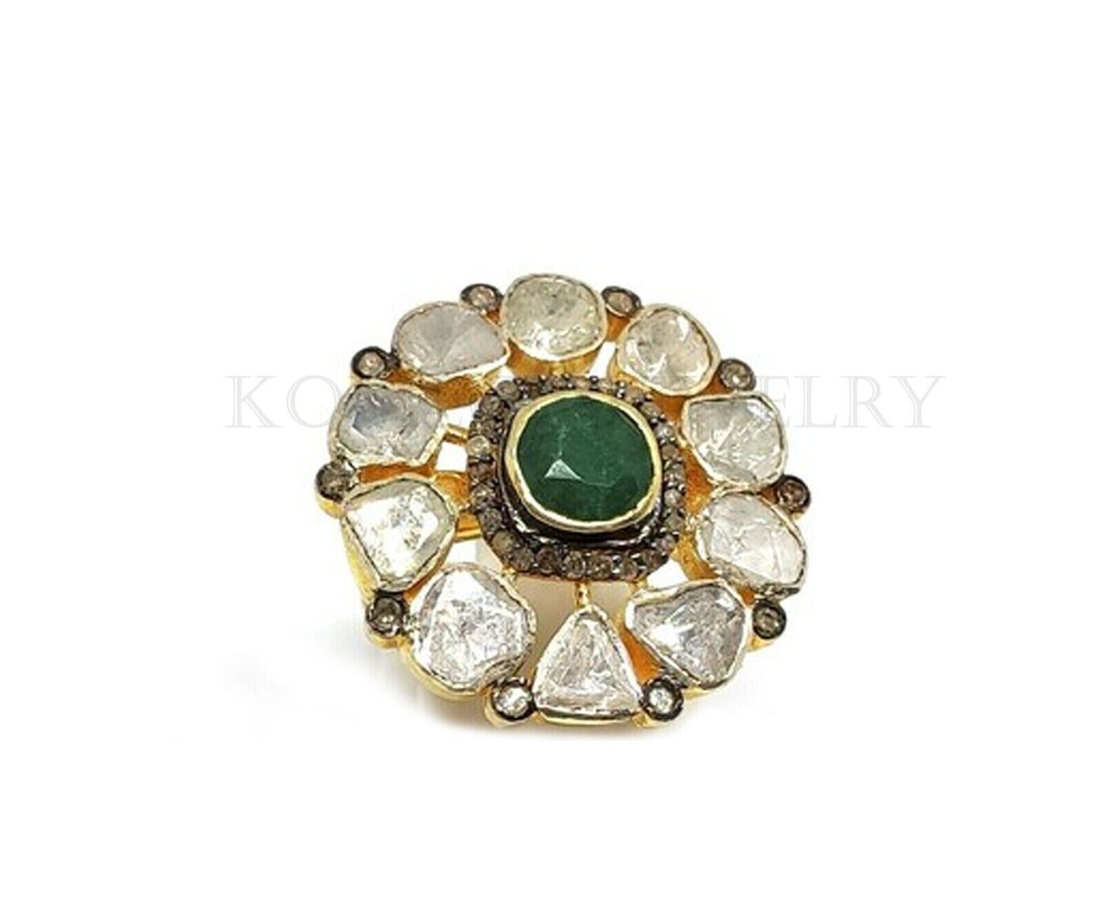 Material: Natural Diamond Features: Stackable Main Stone Width: Irregular Customized: Yes Setting Style: Bezel Handmade: Yes Main Stone Creation: Natural Number of Diamonds: As Per Given Picture Main Stone Shape: Irregular Secondary Stone: Emerald Pave & Polki Diamond Main Stone Treatment: Not Enhanced Style: Charm, Cocktail Personalize: Yes Ring Size: All Size Are Available Signed: Yes Theme: Angels, Anime, Art, Awareness, Beach, Beauty, Colleges & Universities, Ethnic, Family & Friends, Hunting, Inspirational, Letters, Numbers & Words, Love, Luck, Magic, Nature, Religious, Vacation, Western, Holiday Metal Purity: 925 Diamond Clarity Grade: Included (I1) Shape: Irregular Total Carat Weight: Irregular Main Stone Length: Irregular Cut Grade: Good Colored Diamond Intensity: Fancy Number of Gemstones: As Per Given Picture Country/Region of Manufacture: India Metal: Silver Main Stone: Diamond Wholesale: Yes Type: Ring Diamond Color Grade: I Personalization Instructions: we will feel happy to serve you with the best we can Vintage: Yes Brand: Handmade Main Stone Depth: Irregular Country of Origin: India Sizable: Yes Color: Gold Base Metal: 925 Sterling Silver Main Stone Color: Natural Band Width: Irregular Era: Victorian Occasion: Anniversary, Birthday, Christening, Christmas, Engagement, Mother's Day, Valentine's Day, Wedding