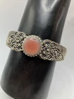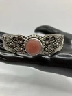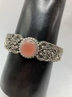 This stunning Vintage Suarti BA Bali 926 Sterling silver rose quartz cuff bracelet has intricate detailing. It weighs 37 grams. Circumference is 5.75”. Copper colors are skin tone reflections. Very Nice condition, some scuffs and scratches, needs a polish. PLEASE CHECK OUR OTHER AUCTIONS AS WE HAVE A LARGE COLLECTION OF SOUTHWEST STERLING JEWELRY. ALL LISTINGS STARTING AT .99 NO RESERVE. PLEASE FEEL FREE TO ASK ANY QUESTIONS . THESE ITEMS ARE VINTAGE OR ANTIQUE AND SHOW SOME SORT OF USE NONE ARE BRAND NEW. WE DO ACCEPT RETURNS IF NOT AS DESCRIBED! WE DO COMBINE AUCTIONS THANK YOU
