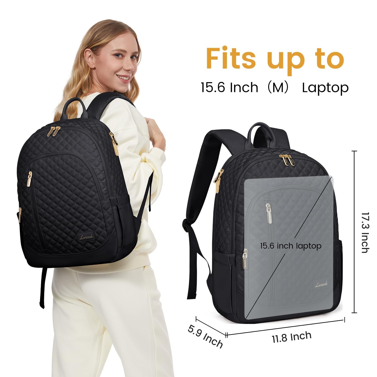 Elevate your style and functionality with our Elegant Style Laptop Backpack for Women, your perfect travel and work companion. With its compact size and lightweight design, this laptop backpack offers ample space for your 15.6-inch laptop and essentials. Stay organized with its 17 pockets, ensuring easy access to your belongings. Convenience is key. Our computer backpack features elastic side pockets, anti-theft zippers, and breathable shoulder straps for maximum comfort. It's also equipped with a luggage strap, making travel hassle-free. Rest easy knowing your computer is protected with the thick padding. Plus, the backpack is water-resistant, keeping your belongings safe in light rain. Travel with ease as our travel backpack meets airline regulations and is TSA-friendly. No more back pack checks and wasted time at the airport. Upgrade your travel, work, or study experience with the Laptop Backpack for Women. Stay stylish and organized wherever life takes you. Choose quality and convenience. Choose . 【Airline Approved & TSA Friendly】 This 11.8" L x 5.9" W x 17.3" H, 1.6 lbs travel backpack for women perfectly fits under airplane seats. It includes a lay-flat laptop compartment that opens 90-180 degrees, allowing laptops to stay in place, making airport security checks easier. 【Large Capacity & Multiple Compartments】This laptop backpack has total 3 compartments and 17 pockets- 1 main compartment,1 laptop compartment,1 front compartment and 17 pockets,which are convenient for your organization and storage. 【High Quality Material】 This laptop backpack for women is made of water resistant and quality Polyester fabric with sleek quilting. Lightweight and sturdy, ensure this backpack durable and fashionable, all while maintaining a lightweight feel. 【Designed for Your Convenience】To release your hands, our computer backpack is designed with a convenient luggage strap, that lets your backpack stay on your luggage case. Whether hurrying through the airport or crowded streets, make your travel and business more convenient. 【Ideal Gift】This causal backpack can be a great companion for college, travel, business, daily use, indoor and outdoor activities. Ideal gifts for friends, mother, father, her or him.
