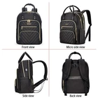 Quilted Laptop Backpack Specifications: Dimension: 17.3”H x 12.6”L x 6.7”W. Weight: 1.5 lb. Shoulder Strap Length: Up to 45". Material: Nylon + Sponge + Gold-Plated Zipper Backpack for women built from Exquisite gold-plated zippers, PU leather top handle, fashion stitch texture polyester waterproof fabric and gold-plated zipper on the outside, and tear-resistant material on the inside for durability. USB Charging Port Design: With an External USB charging port set-in charging cable, this USB laptop backpack offers you a more convenient way to charge your phone while on the go. (Power bank NOT included). Multi-function Laptop Backpack: Backpack for women have retractable pockets on both sides, which are specially designed for small items. You can put small items such as water cups, umbrellas, etc., simple and convenient. This is a stylish computer daypack, ideal gift for granddaughter, daughters, friends, lover, teachers, womens. A great choice for pretty backpack, office work backpack, travel backpack for women, bookbags for women, daily use basic backpack, nurse backpack, teachers backpack, all indoor and outdoor activities. Stylish Black Quilted Backpack: Black & gold backpack for women is made of fashion quilted polyester waterproof fabric with gold plated zipper on the outside and tear resistant material on the inside for durability. The backpack handles are the right length and are designed for handbags. If your into backpack purses this would be perfect for you. Large Backpack with Laptop Compartment: laptop backpack for women. Size: 17.3*12.6*6.7 inch, 30L. The laptop backpack has a total of 5 compartments and 2 side pockets - 1 padded 15.6" laptop compartment and 1 large compartment for travel items such as folders, books, clothes, etc. 2 front compartments and 1 front pocket provide ample capacity for organizing - wallet, notebook, pens, sunglasses, keys and more. USB Charging Port Design: There is a USB charging port extension on the side of the work backpack, with a built-in charging cable inside, which is convenient to charge your phone (POWER BANK is not included). work bag is a very beautiful and very functional bag. Convenient Womens Backpack: The mesh shoulder strap design on both sides of the back pack allows enough air circulation around your shoulders, and sturdy top handles and luggage straps make it easy to carry. A fashion pretty black gold backpack designed for all-day comfort. The hidden anti-theft pocket on the back can protect your smartphone, wallet, passport and other valuables from being lost, for all basic daily needs for university, work, travel, hiking, business trips. Ideal Gift: This stylish backpack is perfect for all occasions: college, travel, business, daily use, indoor and outdoor activities. This is a great backpack for college , nurses, doctors, teachers, work womens and other business people. The best choice for gift giving. Age: over 3 years old