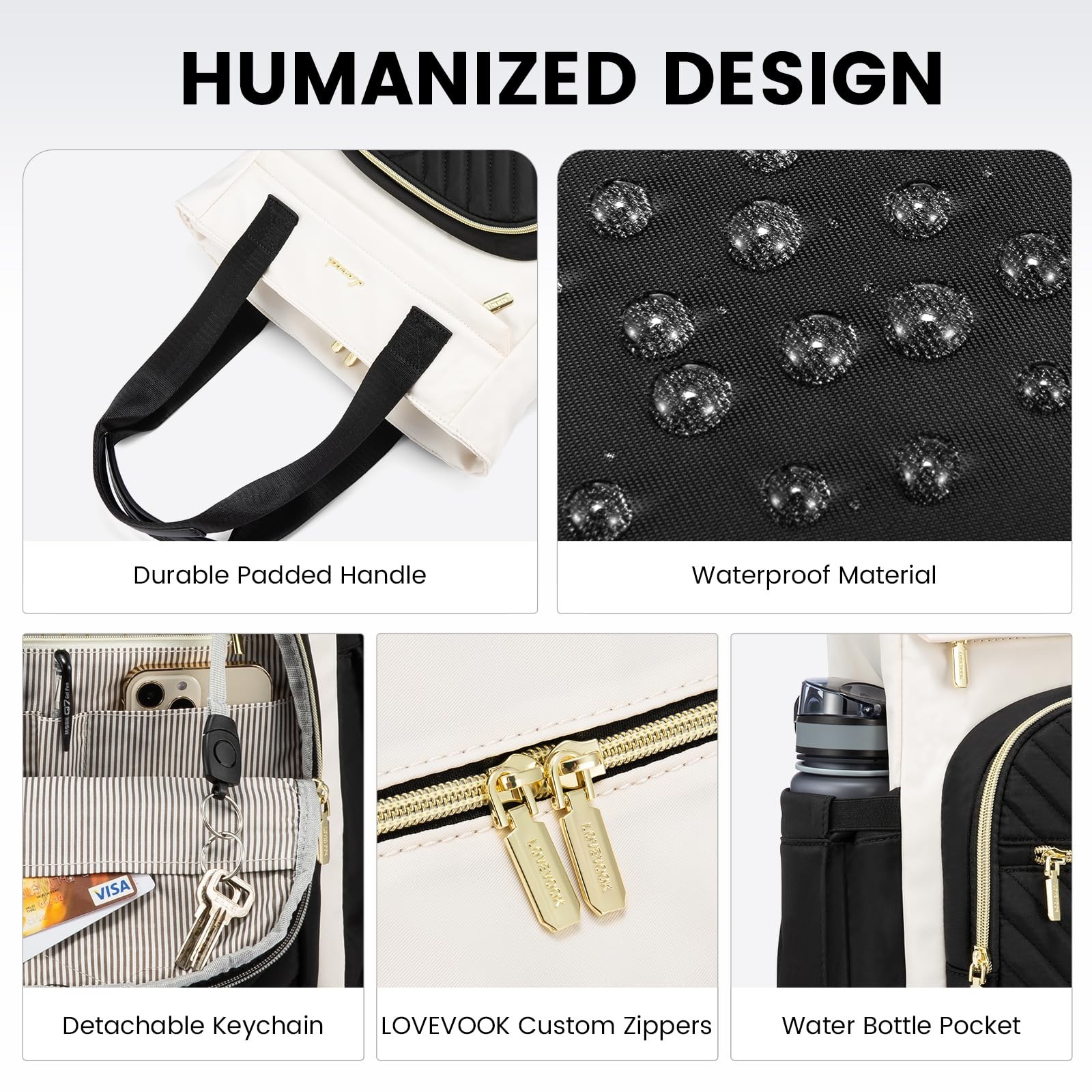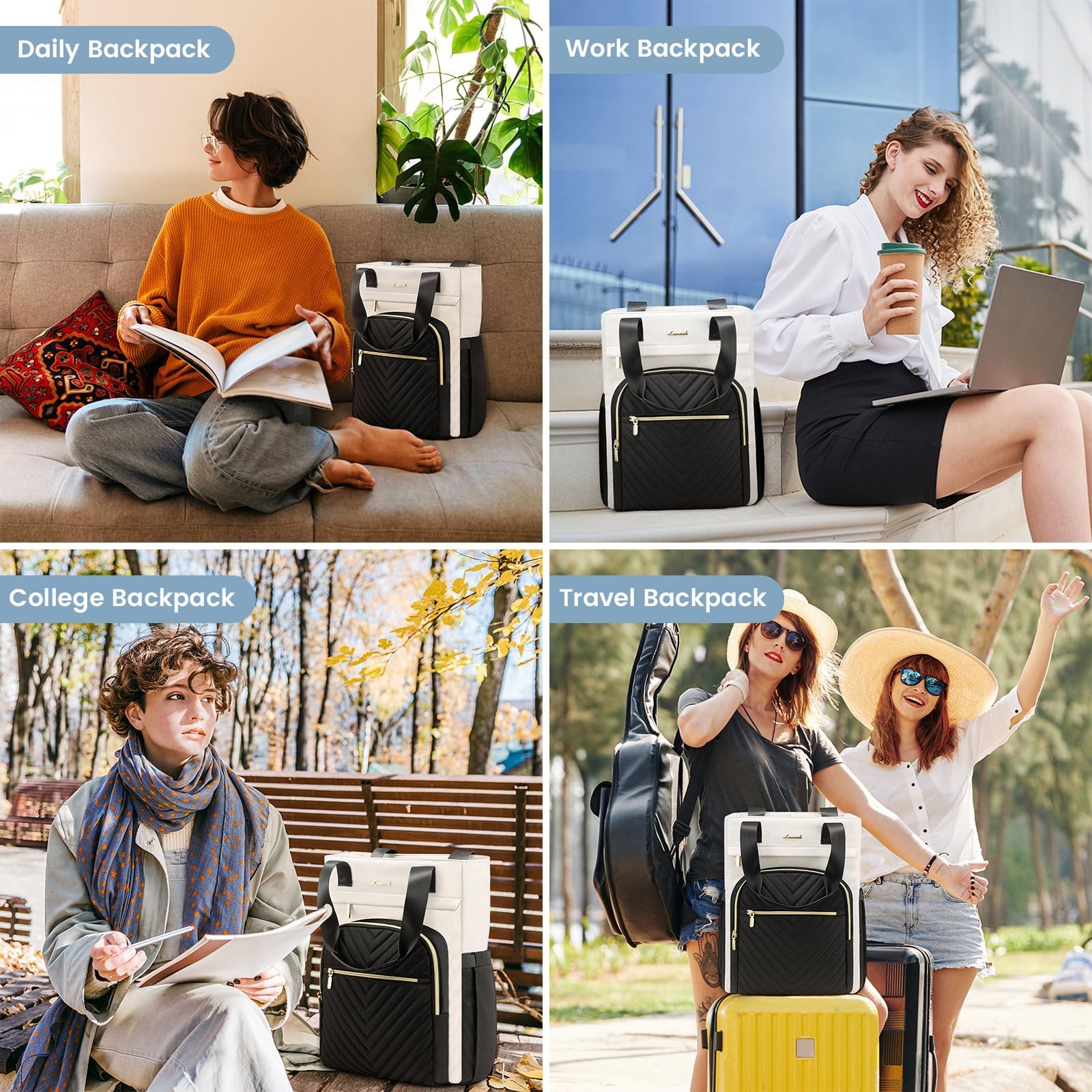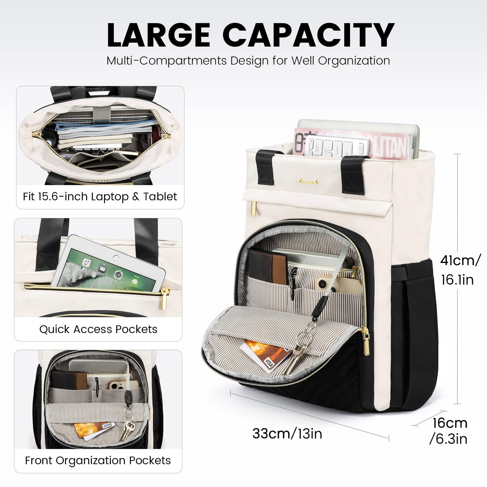 Laptop Backpack for Women, 15.6 Inch Work Business Laptop Bag, Wide Top Open Teacher Nurse Bag with USB Port, Waterproof Computer Backpack Purse for travel,Black-White 💼【MULTI-CARRY OPTIONS DESIGN】- Design 3 in 1 function means you can use it as a chic tote bag, an elegant handbag, or wear it as a hands-free backpack for women , making it super versatile! 👜【WIDE OPEN DESIGN】- backpack for women use a wide open design, rectangular opening providing easy access to the items at the bottom. 🎒【LARGE CAPACITY】 - Size:13" L * 6.3" W * 16.5 " H. Easy to organize all work supplies and fit up to 15.6" laptops. An iPad slot that can accommodate up to 11 inches. 💻【LAPTOP PROTECTION】- Laptop bag for women features padded laptop compartment which can provide good physical protection to your laptop and iPad. Made of waterproof and sturdy polyester material. 🛫【LUGGAGE STRAP DESIGN】- Designed for travel, trolley strap allows the bag to slide over rolling luggages, free your hands and back from the burden. Make your travel more convenient and enjoyable. 🧡【COMFY & STURDY】- Mesh airflow shoulder strap design, ergonomic shoulder strap length. With comfortable handles, the pack is reinforced and sewn at every point of stress to ensure absolute durability. polyester Shipping We offer FREE shipping on all orders! We ship within Three business days of payment, usually sooner. We use a selection of shipping services such as UPS, FedEx, USPS etc. We only ship to the lower 48 states, no APO/FPO addresses or PO Boxes allowed. Local pickups and combined shipping options are not provided at this time. Return You can return a product for up to 30 days from the date you purchased it. Any product you return must be in the same condition you received it and in the original packaging. Please keep the receipt. Payment We accept payment by any of the following methods: PayPal Please pay as soon as possible after winning an auction, as that will allow us to post your item to you sooner! Feedback Customer satisfaction is very important to us. If you have any problem with your order, please contact us and we will do our best to make you satisfied. Contact Us If you have any queries, please contact us via ebay. We usually respond within 24 hours on weekdays. Please visit our eBay store to check out other items for sale! Thank you for shopping at our store.