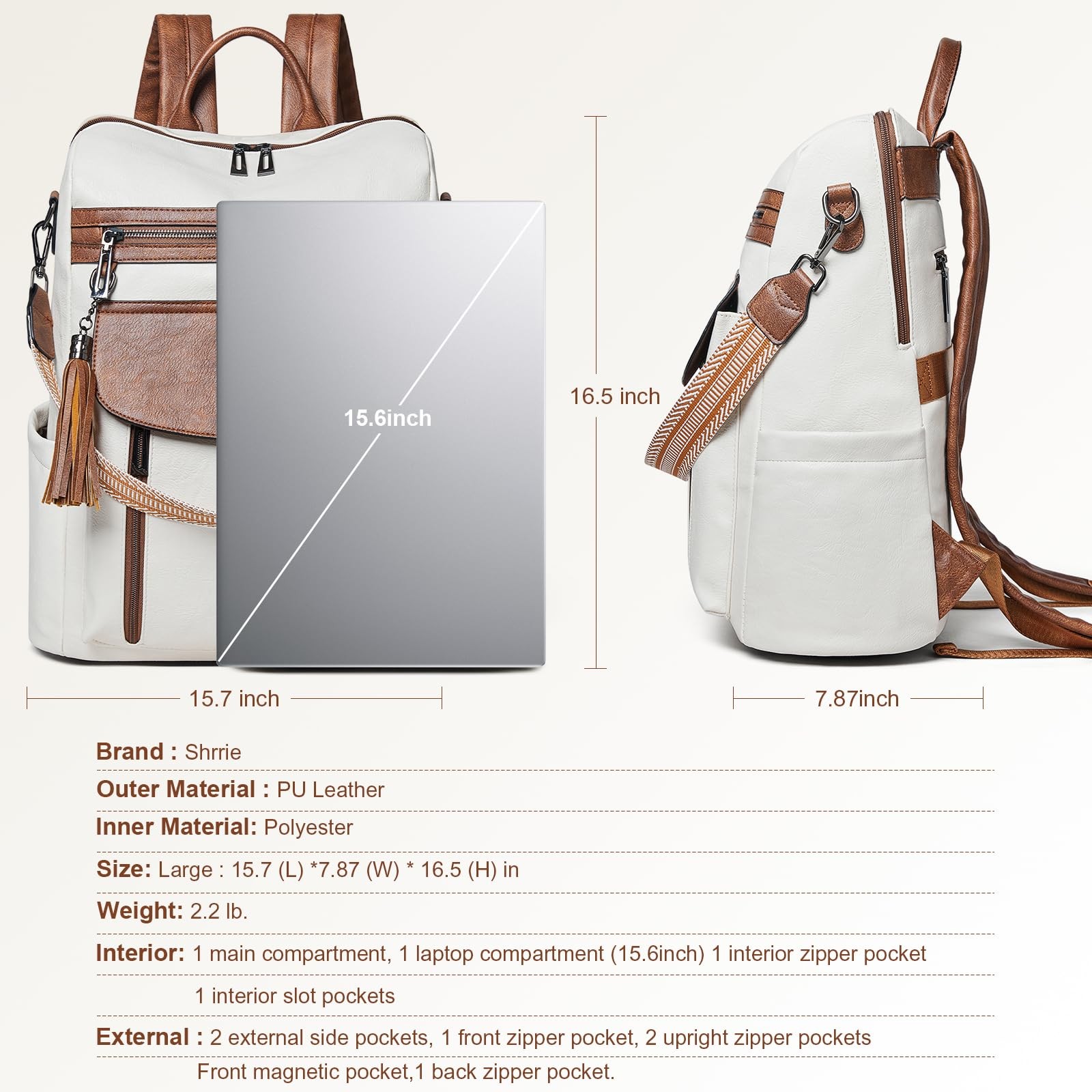 If you are looking for a gift for a women,whether for teacher,nurse,officer or any other profession worker,THIS BACKPACK PURSE IS THE FIT ONE! High quality water resistant PU leather: Provide a more comfortable experience,show your noble charm,and make you always different! Fashionable Appearance:Variety of color styles;Classic-modern combination Use Scenarios:Whether you're heading to class, work, or a weekend getaway, this fashion-forward backpack purse for women is your ideal companion. Multifunction:Waterproof,Multiple pockets,Large-Open-Mouth Design This is a gift that all professional women will love! 【Leather Laptop Backpack for Women】:Laptop backpacks made of soft and durable faux leather and fabric lining,thick shoulder straps,unique leather handles,no-slip zippers.The heavy-duty laptop backpack women features a total of 2 compartments and 11 pockets,making it easy to organize all work necessities,college supplies,and travel essentials,with dimensions of 16.5" x 15.7" x 7.8" and a weight of 2 lbs 【Fashion Padded Computer Backpack Laptop Bag】:Work backpack Fit up to 15.6" laptops well.This purse backpack for women is padded on bottom.When traveling with this travel backpack and your suitcase,you can utilize the luggage strap attached to the leather laptop backpack for women,eliminating the need to carry it on your shoulders and effortlessly alleviating physical strain 【Multi-Purpose Water Resistant Backpack】:This women's backpack can be used in all scenarios,perfect for work,business,college,travel,travel by plane,daily use and outdoor activities.Even if you accidentally spill water on the work backpack while working, you don't have to worry about the laptop inside being damaged as a result.Can be used as a work backpack,college backpack,casual backpack,travel backpack,airplane travel backpack,teacher backpack and nurse backpack 【Anti-Theft Backpack for Traveling on Airplane】: This back pack purses women fully complies with the size requirements for air travel,allowing you to take it with you as you travel around the world.Perfect size to fit under the seat on airplane and attaches to the raised handle of the suitcase for easy traveling.15.6-inch laptop backpack incorporates a discreet anti-theft zipper on the back,allowing you to safely keep essential items within reach 【GIFT FOR WOMEN】:computer backpack with laptop compartment is great for shopping,travel,dating,hiking, amusement parks,etc.Also,this lovely shoulder bag can be used as a gift for mum,lover,friend,daughter and yourself for Christmas,Thanksgiving,birthday,New Year,graduation,etc