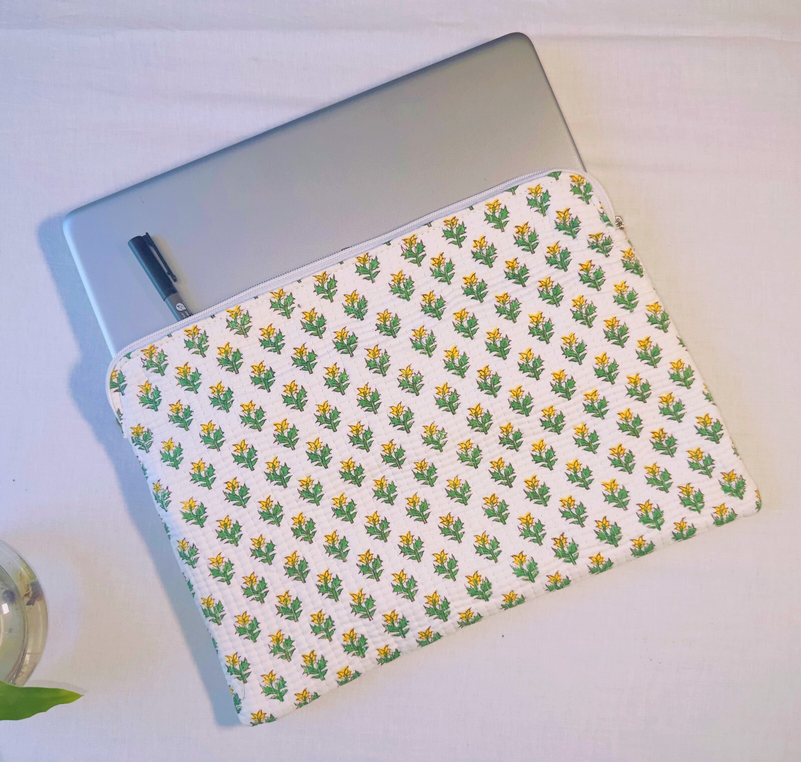 Introducing our Quilted Laptop Bag – the perfect blend of fashion and function. This meticulously crafted bag is designed to provide your valuable laptop with both style and protection. Elevate your daily routine with the Quilted Laptop Bag – where protection meets elegance. It's not just a bag; it's a statement of your style, a shield for your technology, and a symbol of your practicality. Choose both fashion and function – choose the Quilted Laptop Bag. ➡️ Size: 13 inch: 16 inch Material: 100% Cotton Color - As You Select Pattern: Floral Print Wash Care Instructions:- Dry clean only Closure Type : Zipper Closure Usage : Laptop Bag, Travel , Mac book Bag, I Pad Bag, Accessories, Shopping and much more.
